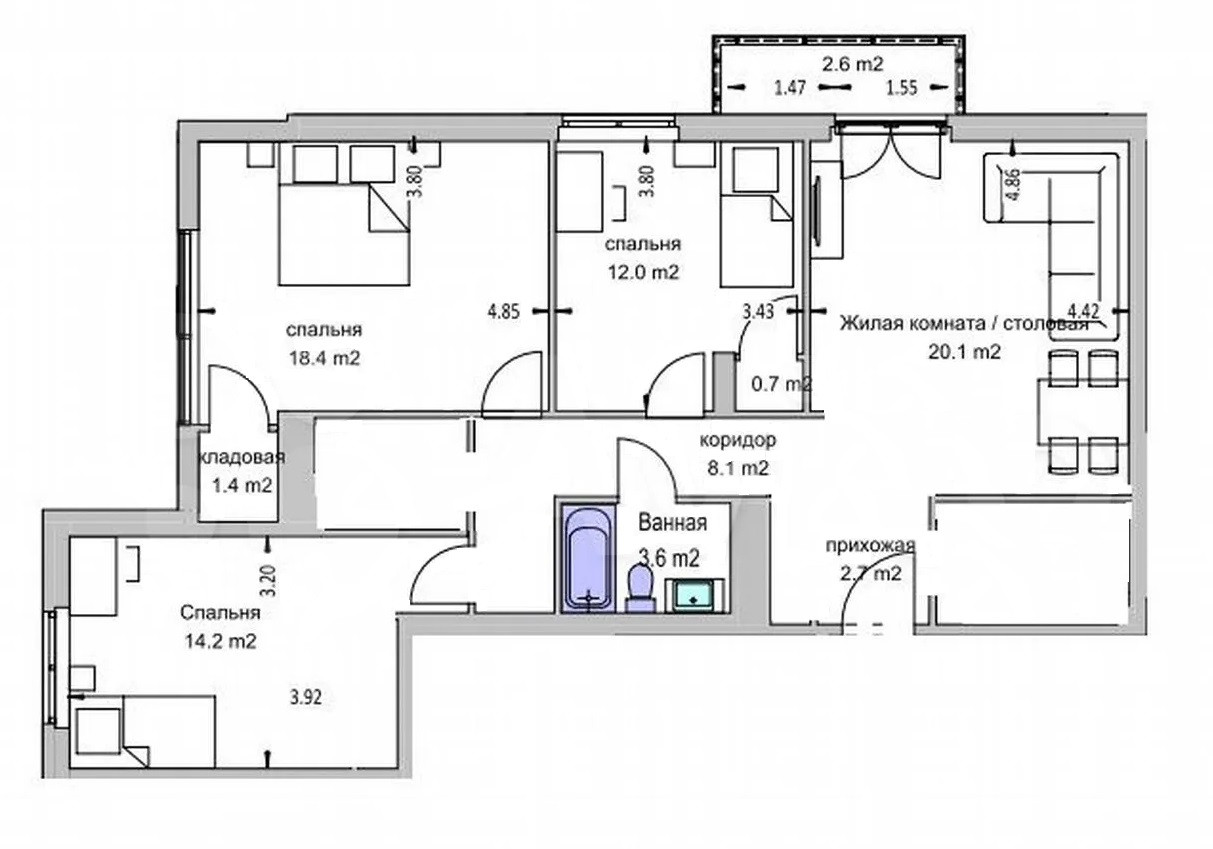 Высота потолка 3,3 метра.