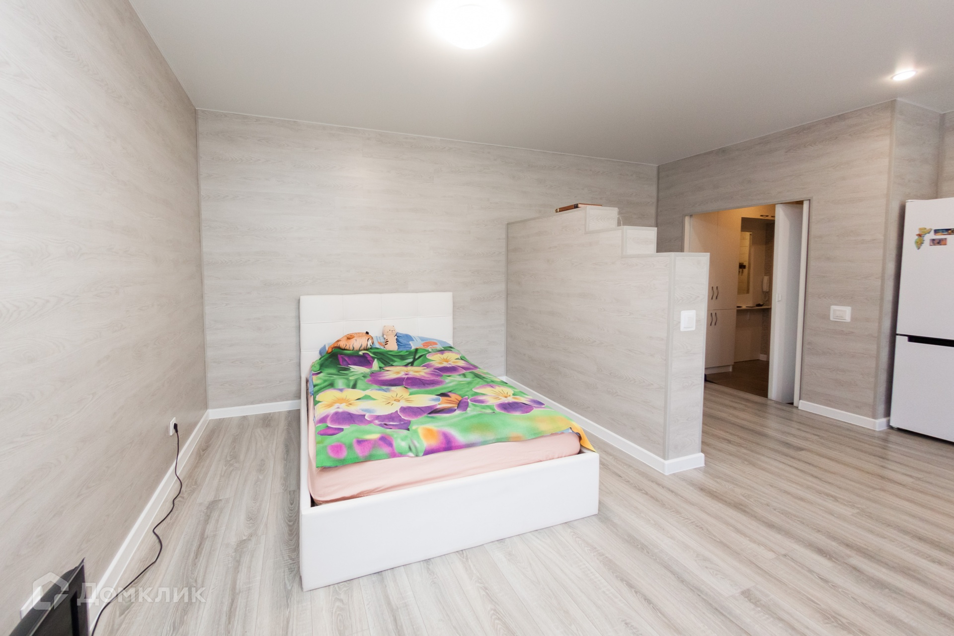 В квартире всё продумано до мелочей: все зоны визуально разделены. Спальная зона отделена небольшой перегородкой (см. фото). Зона прихожей, при входе в квартиру, обшита вагонкой и дополнительно установлен конвектор на стене.