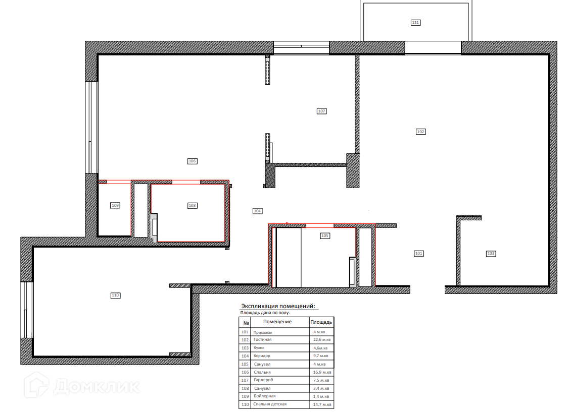 Жилая площадь 90.8 м2