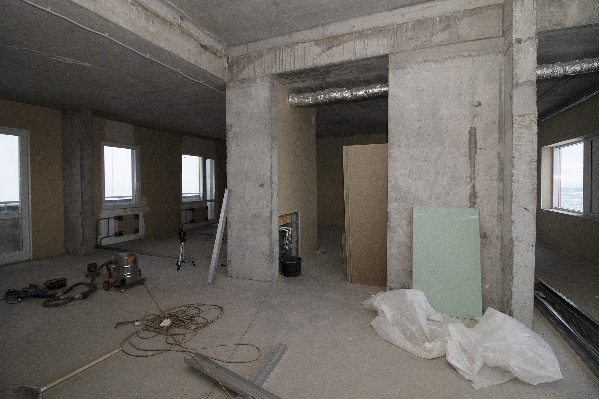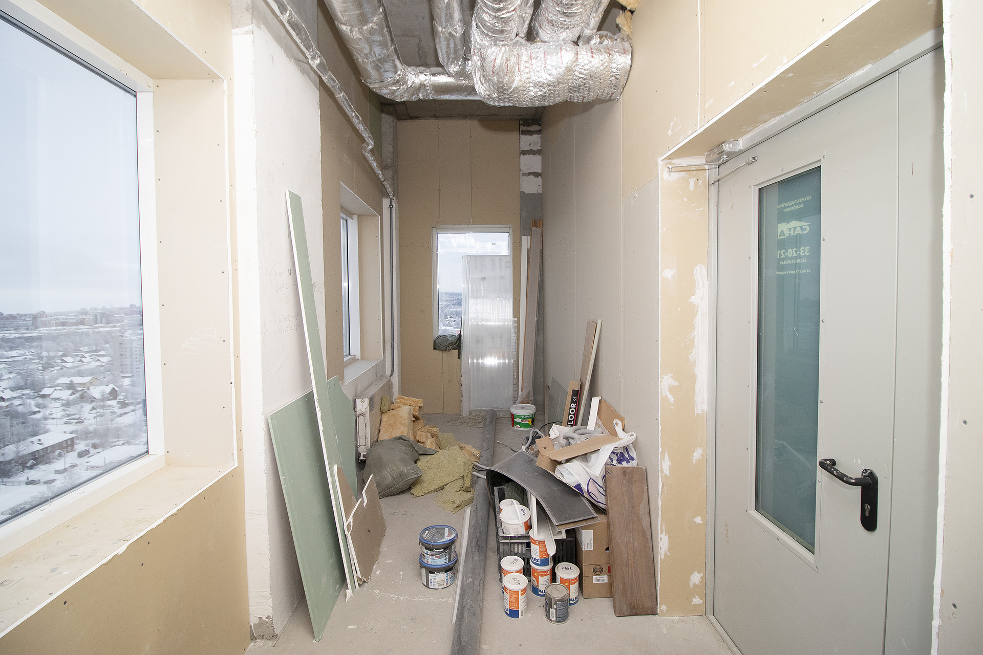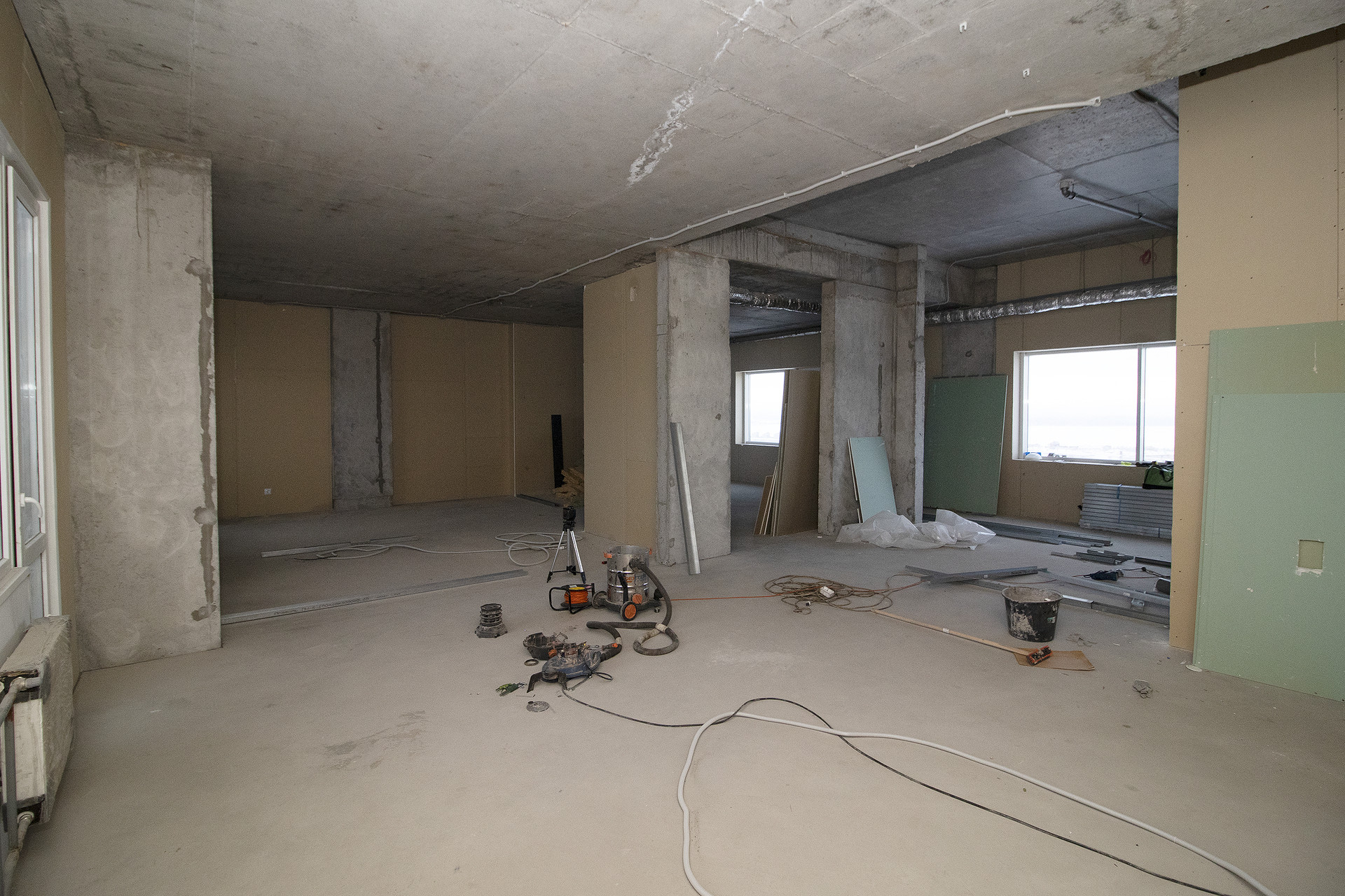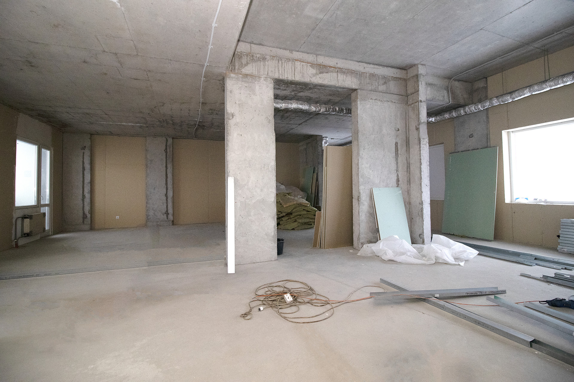 Квартира в частичной отделке, плюс в наличии все стройматериалы для разделения помещений (гипсокартон, направляющие, утеплитель). Частично стены (перегородки) уже установлены, но при необходимости, их можно передвинуть. Определено место под два санузла.