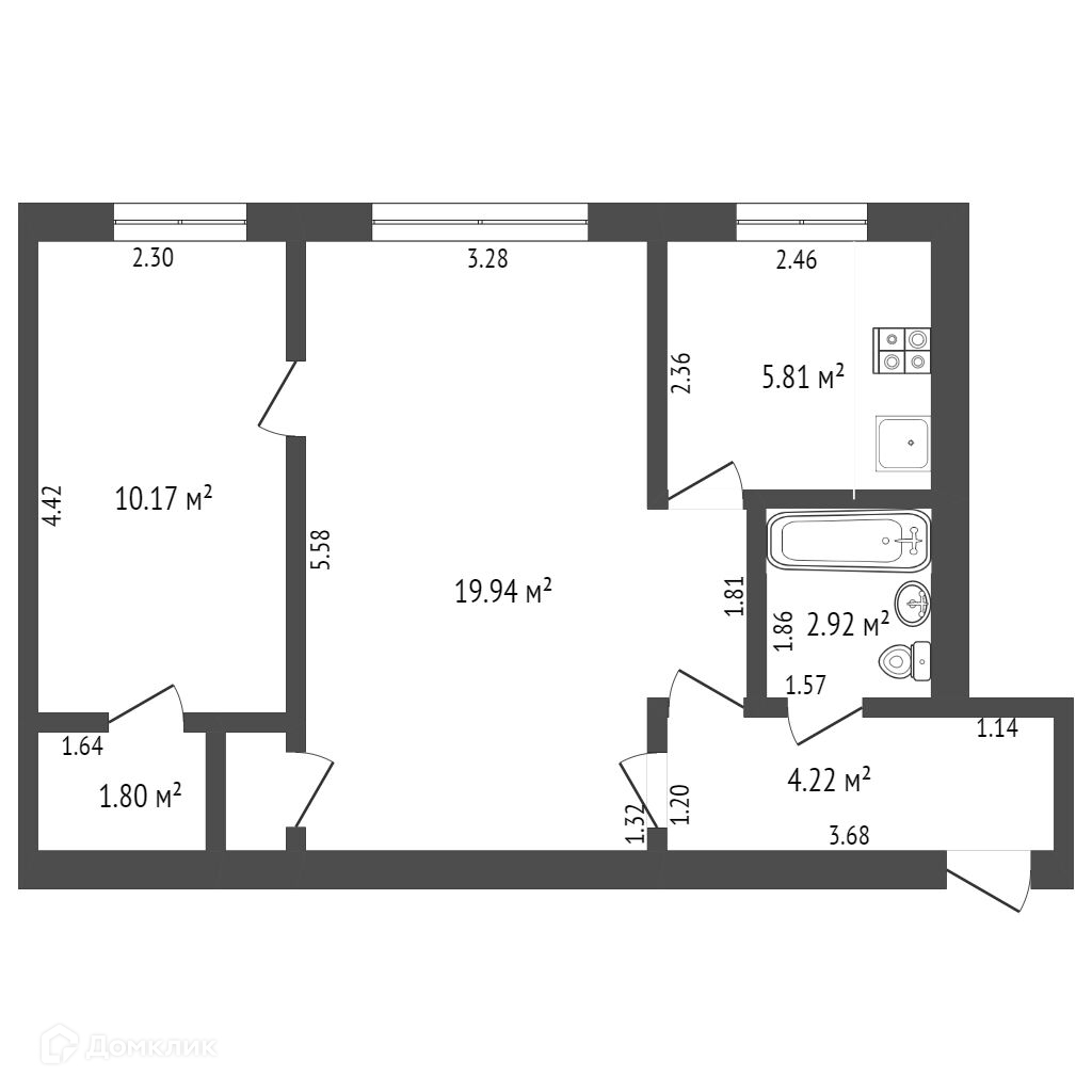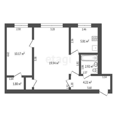 Площадь кухни 5.8 м2