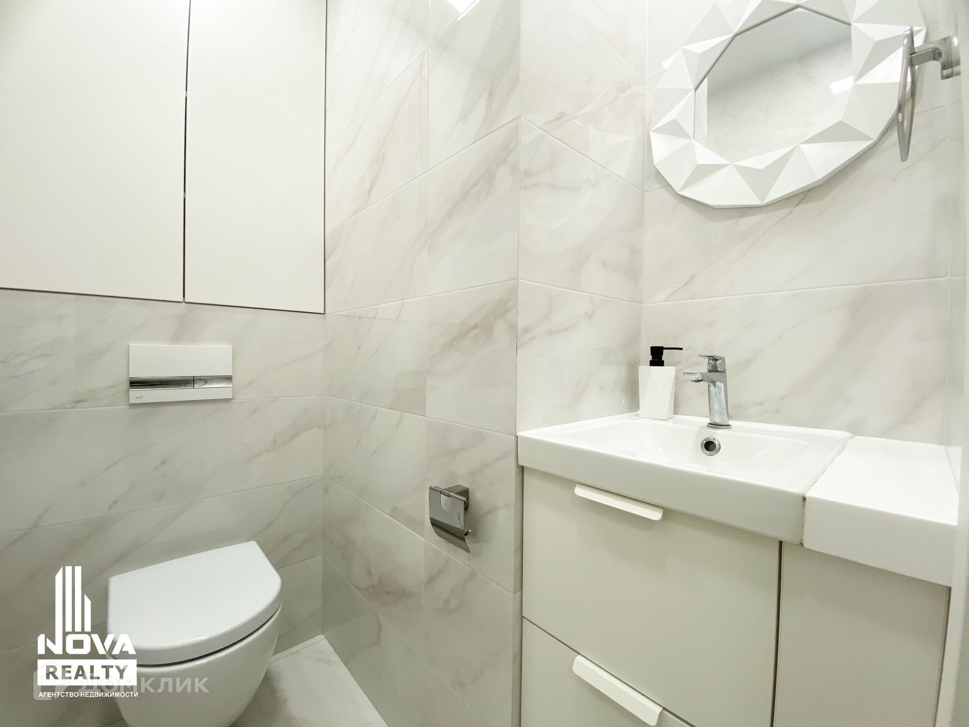 Санузел раздельный, керамогранит и сантехника KERAMA MARAZZI, инсталляция, смесители RAVAK, натяжные потолки, точечные светильники. Остается встроенный навесной шкаф, зеркала.