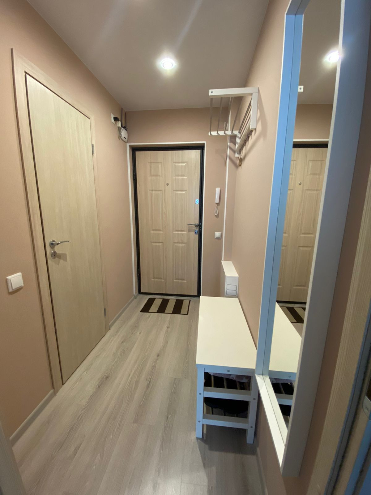 В квартире выполнен качественный евроремонт: напольное покрытие - ламинат.