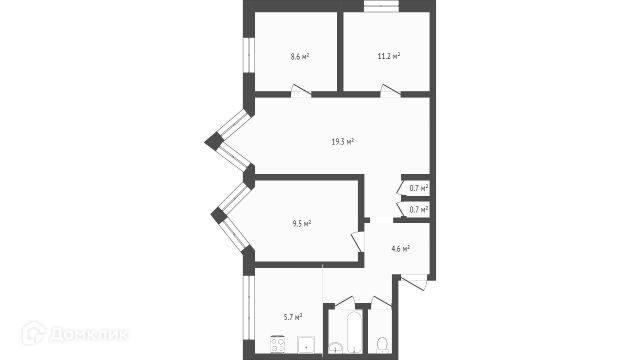 Общая площадь 62.4 м2