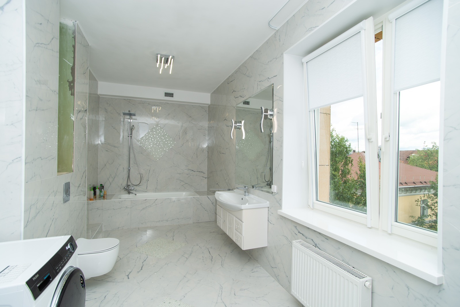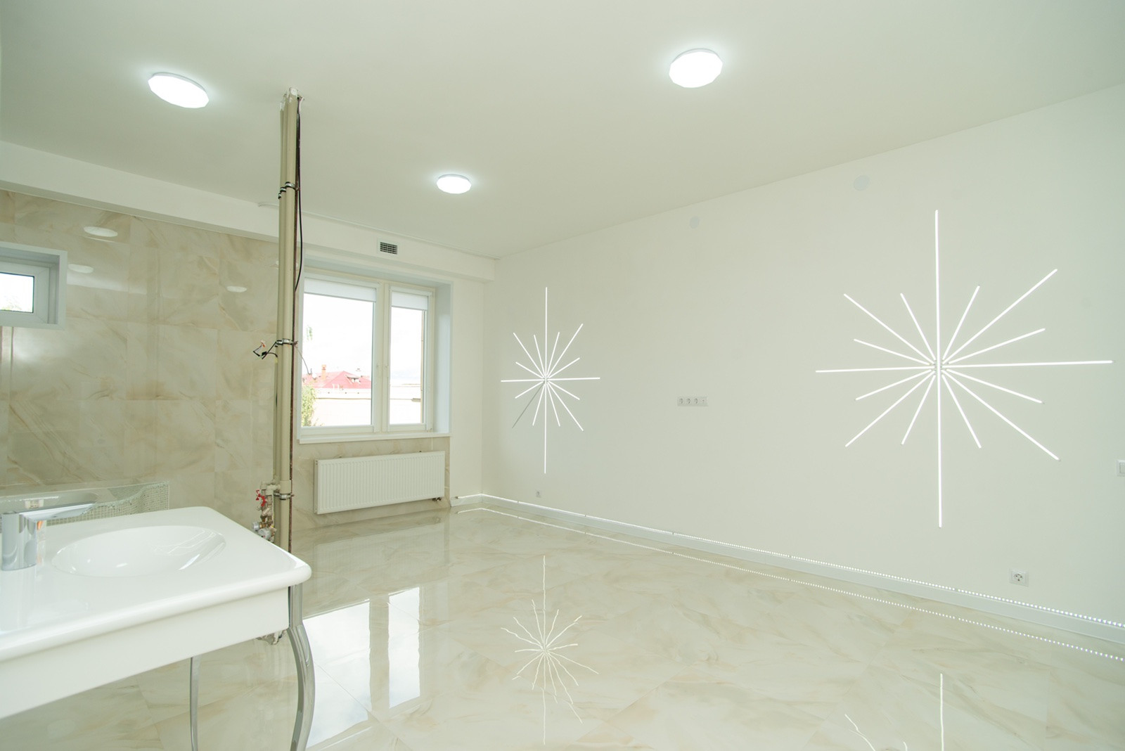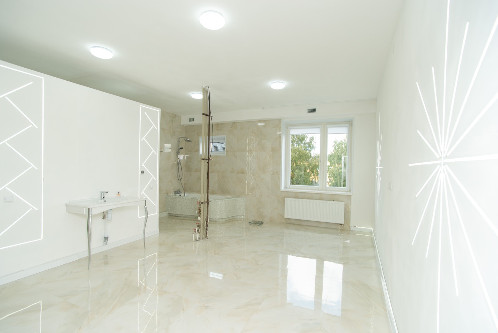 Огромная ванная комната площадью 30 м2,также имеется гостевая ванная комната площадью 15 м2 в каждой комнате имеется полноценное окно.