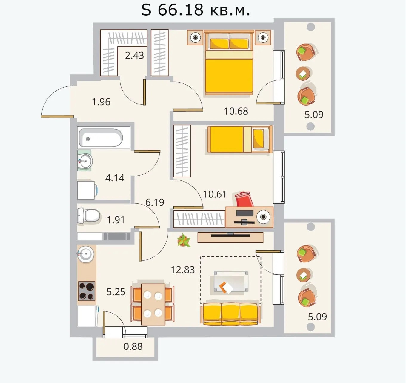Общая площадь 66.2 м2