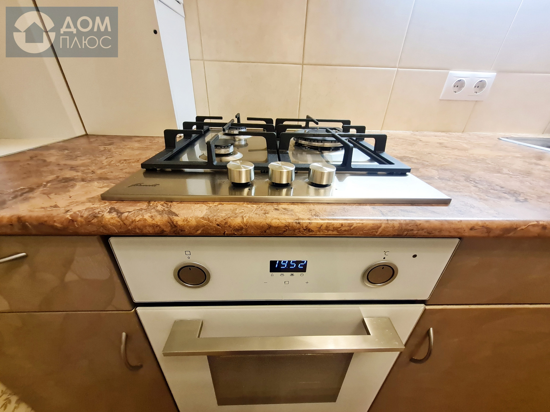 Остается встроенная мебель (вместительный современный шкаф-купе в коридоре) и встроенная кухня с бытовой техникой (плитой, духовкой, вытяжкой, посудомойкой).
