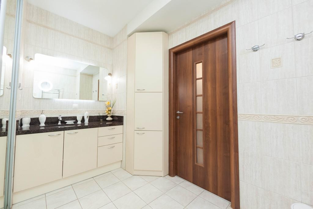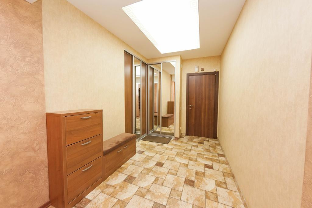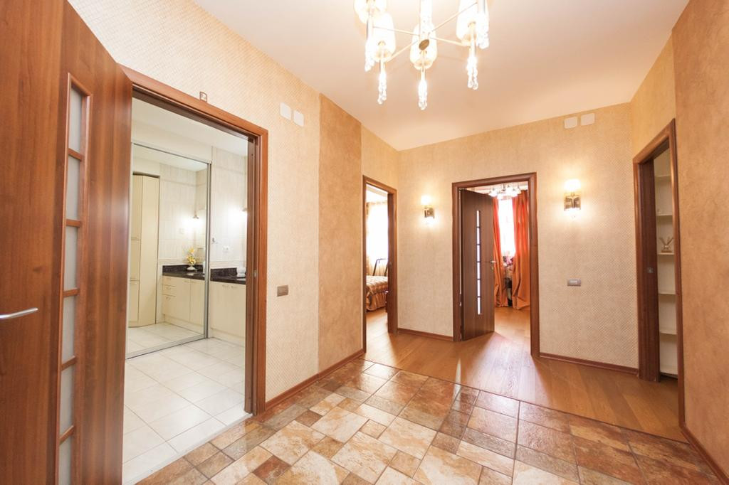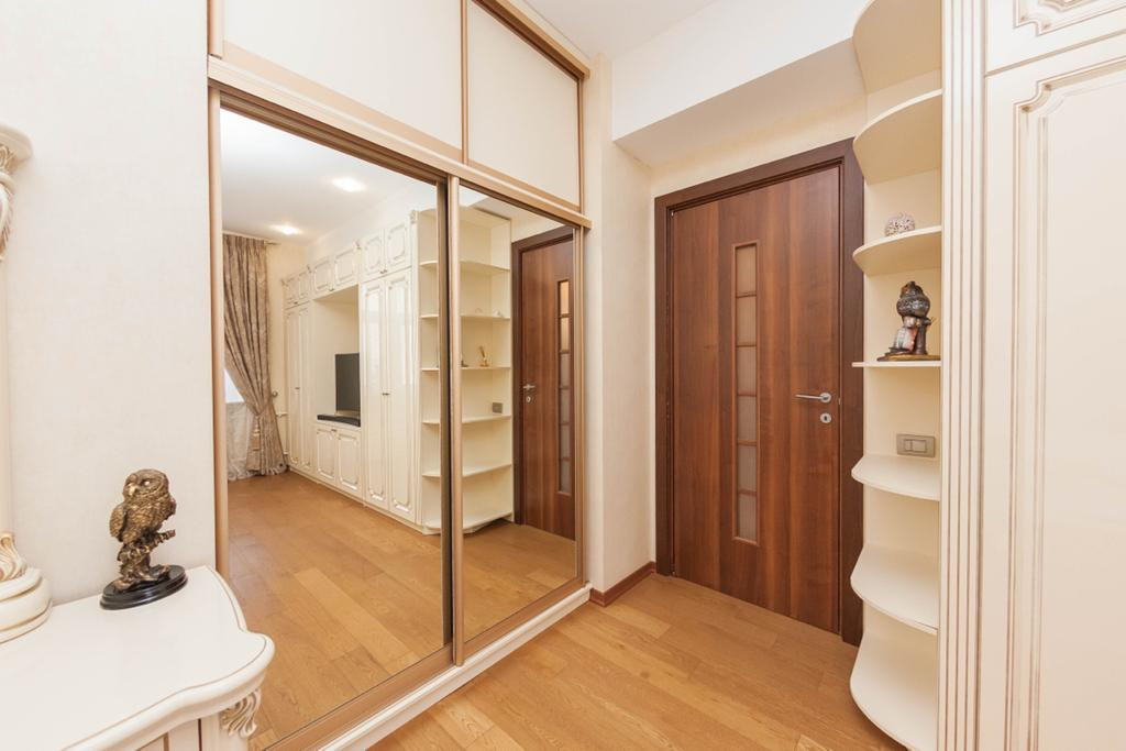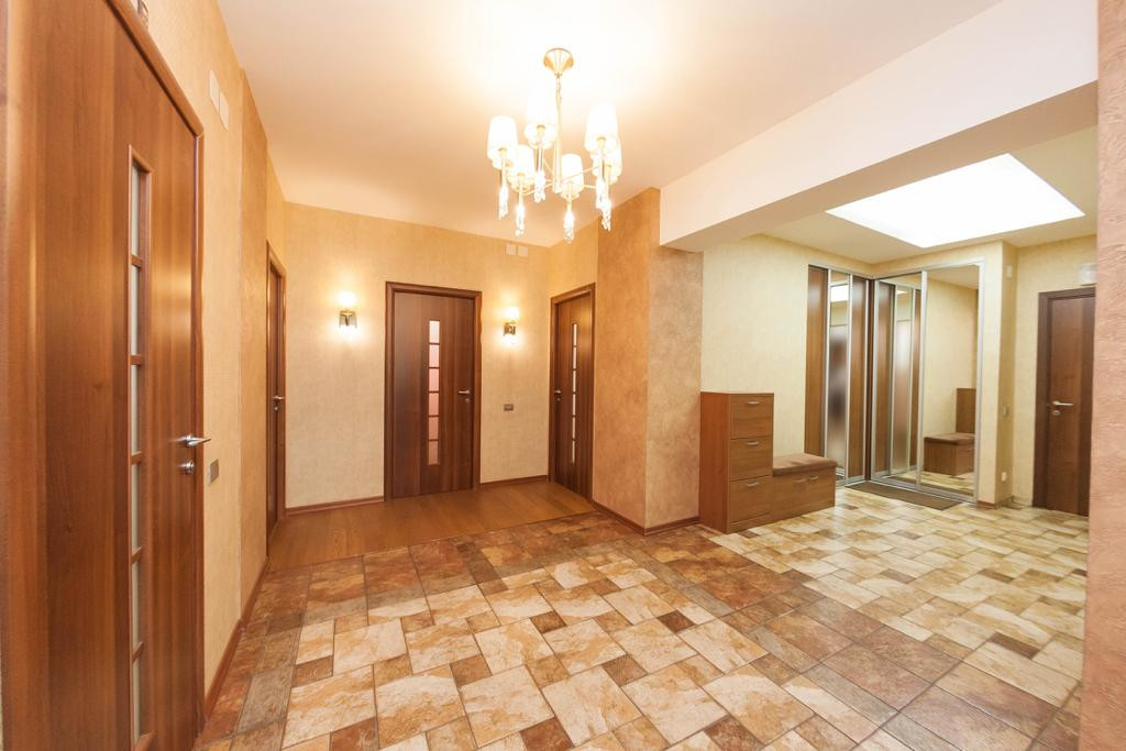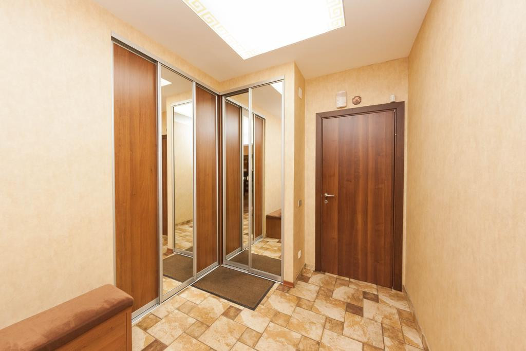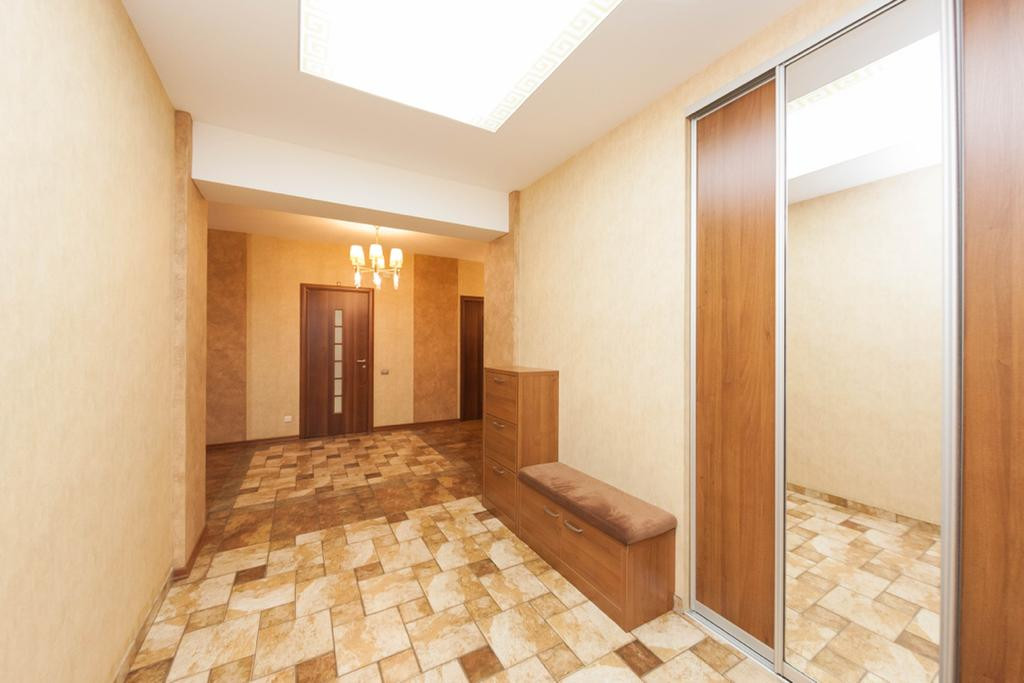 Прихожая: встроенный 2 - х створчатый шкаф с зеркальными дверцами, все межкомнатные двери из массива (Италия), напольное покрытие плитка с подогревом полов.