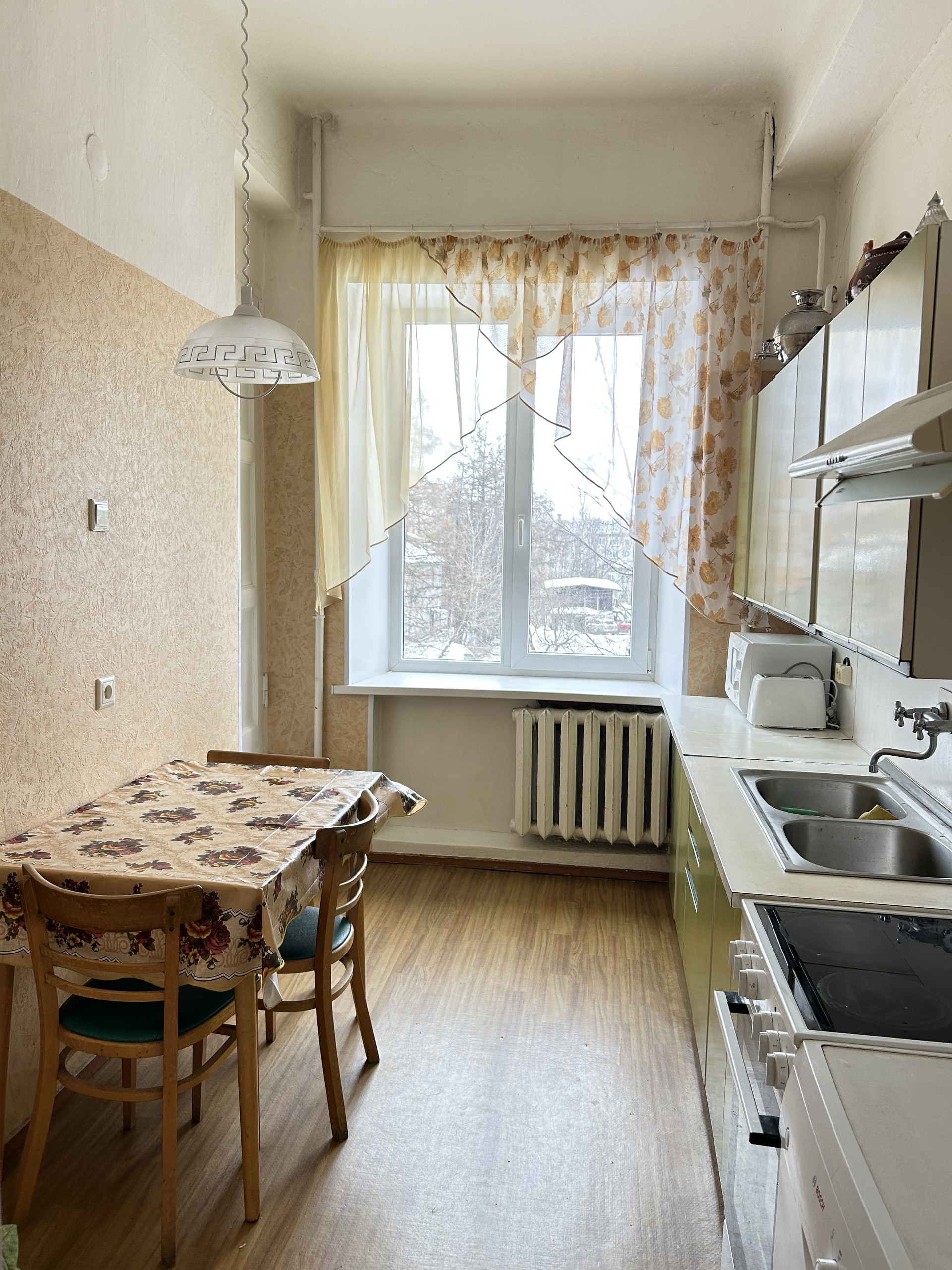 Продаю просторную трехстороннюю квартиру в кирпичном доме, оснащенном электрическими плитами (газа нет ни в одной квартире)! Центральная горячая вода! На этаже всего 2 квартиры!
