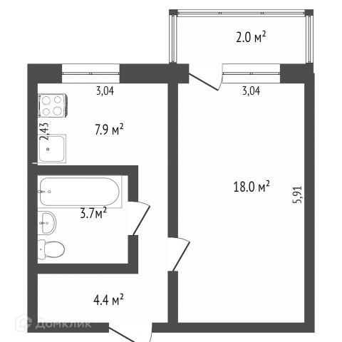 Общая площадь 31.2 м2
