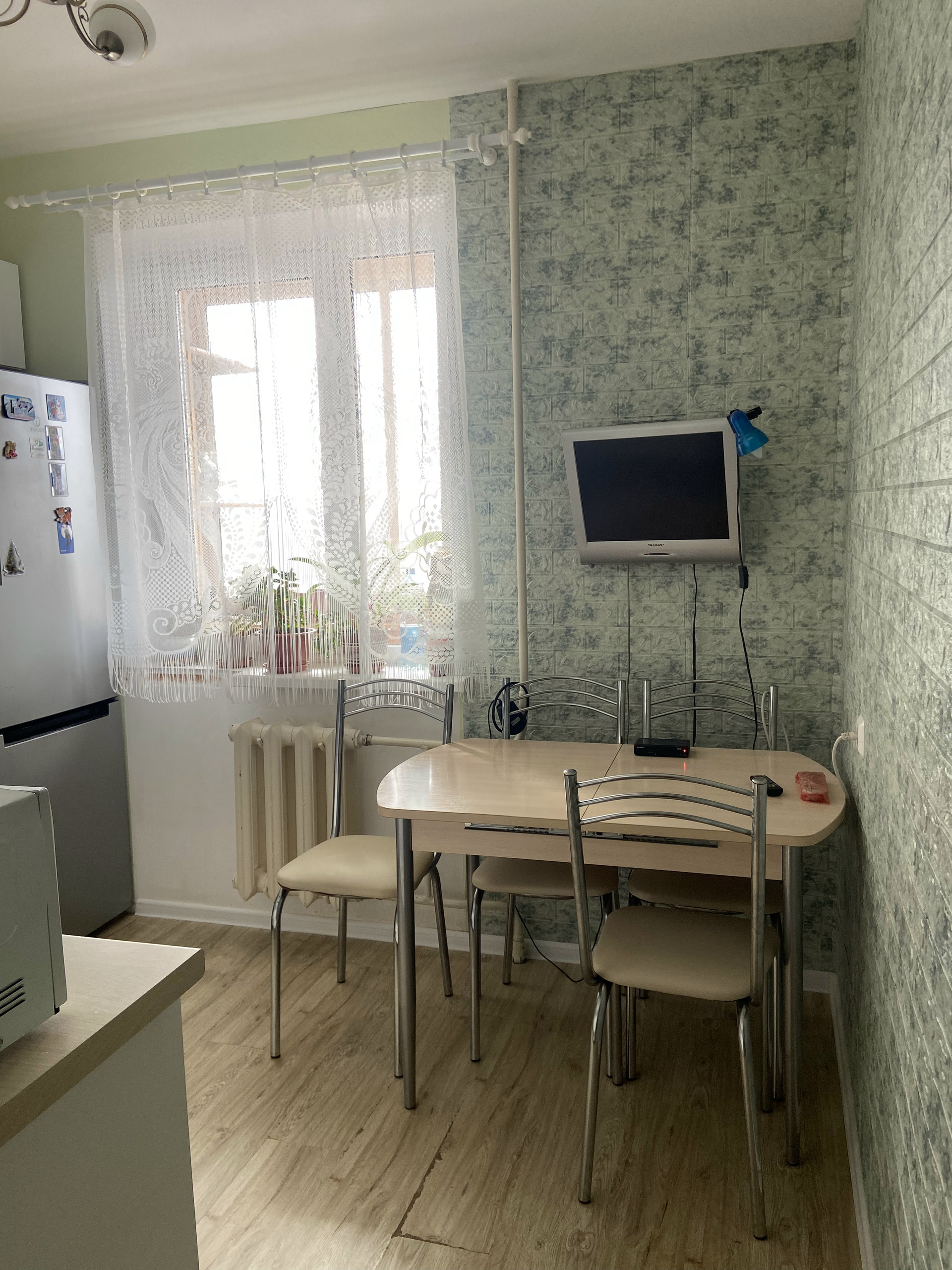 Стояки и трубы заменены, установлены счетчики, установлен новый сан узел и гарнитур в ванной;