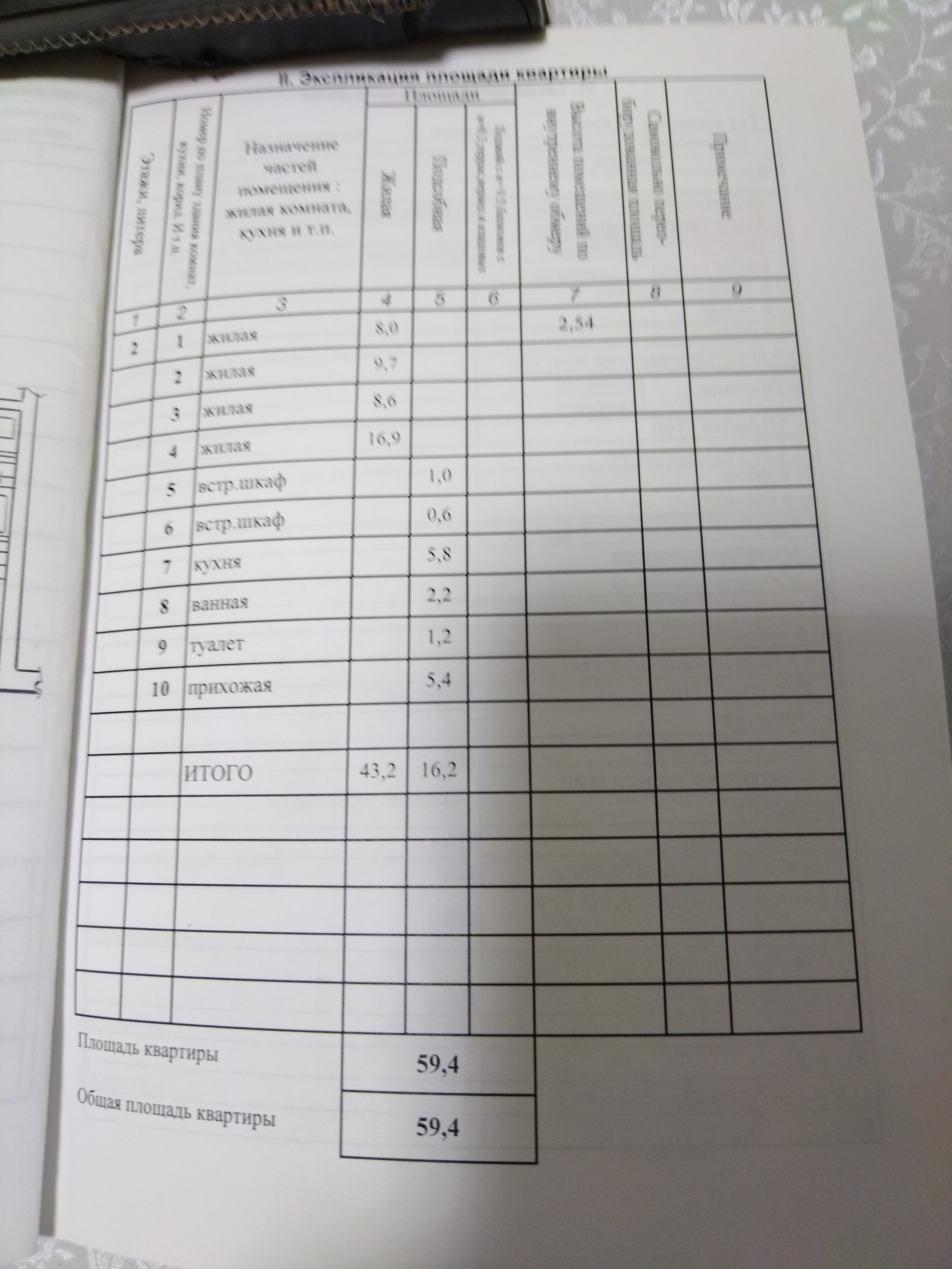 Общая площадь 59.4 м2