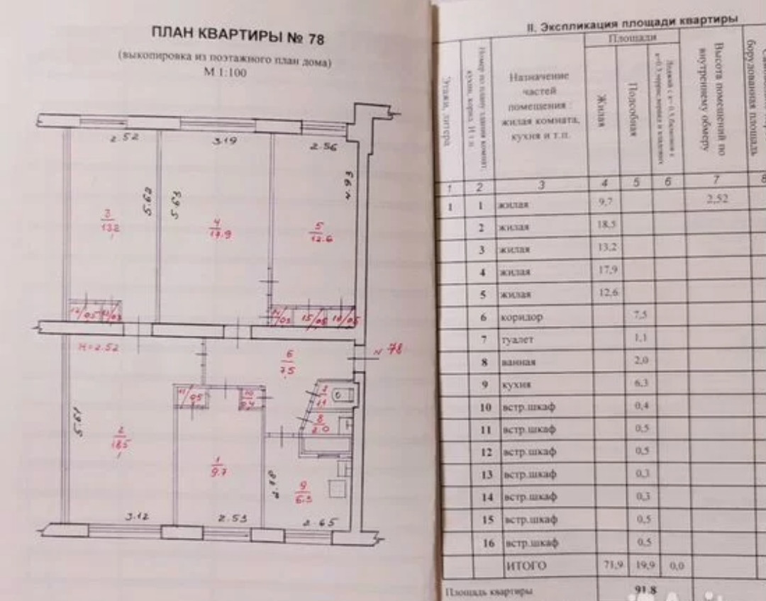 Общая площадь 91.8 м2