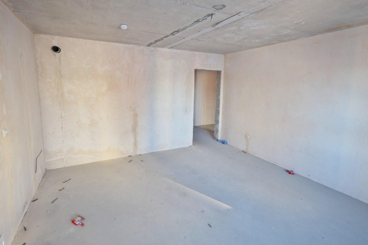 Квартира продается с предчистовой отделкой: стены выровнены, стяжка на полу, разводка электричества.