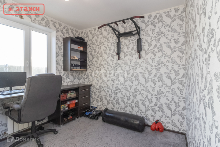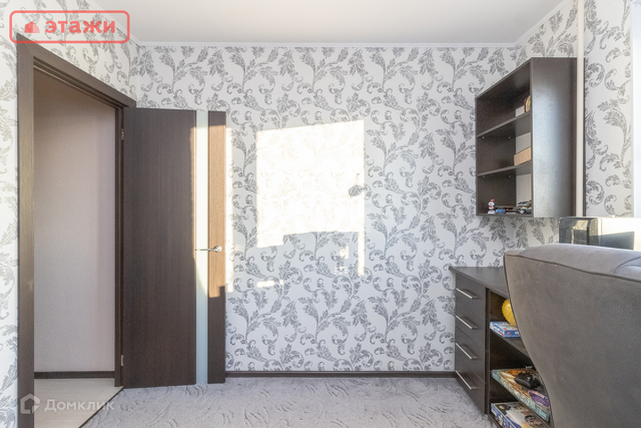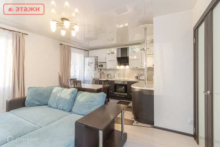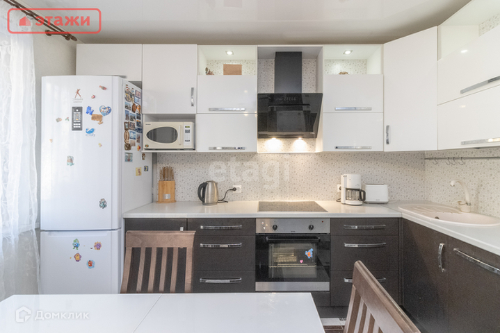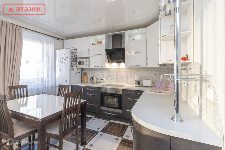 Квартира продается со встроенной кухней, гардеробной и шкафом, бытовой встроенной техникой (духовой шкаф, варочная поверхность, вытяжка), светильниками и шторами, остается вся мебель. Напольные покрытия: керамогранит, ламинат. Два санузла, на первом и втором этаже, на первом этаже ванная, на стенах кафель. Очень удобная лестница между этажами.