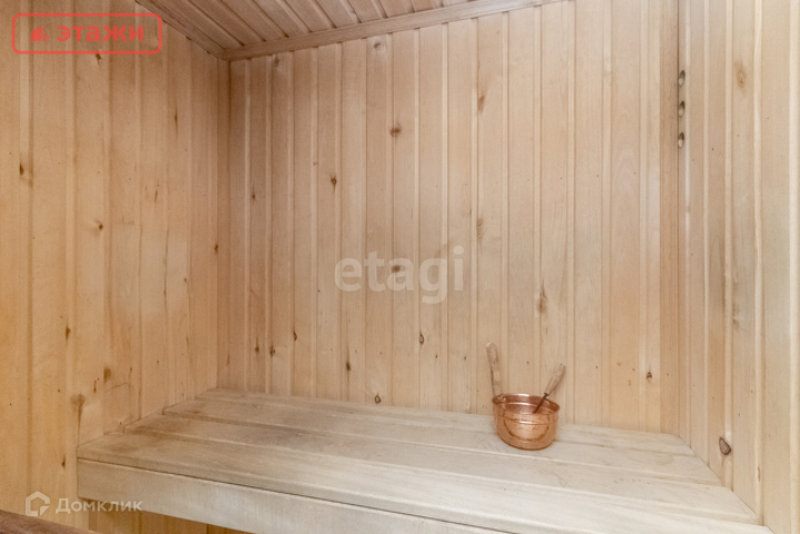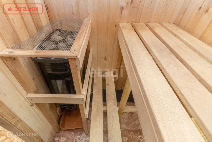 На втором этаже расположены: три комнаты, сауна, санузел, кладовая, гардеробная.