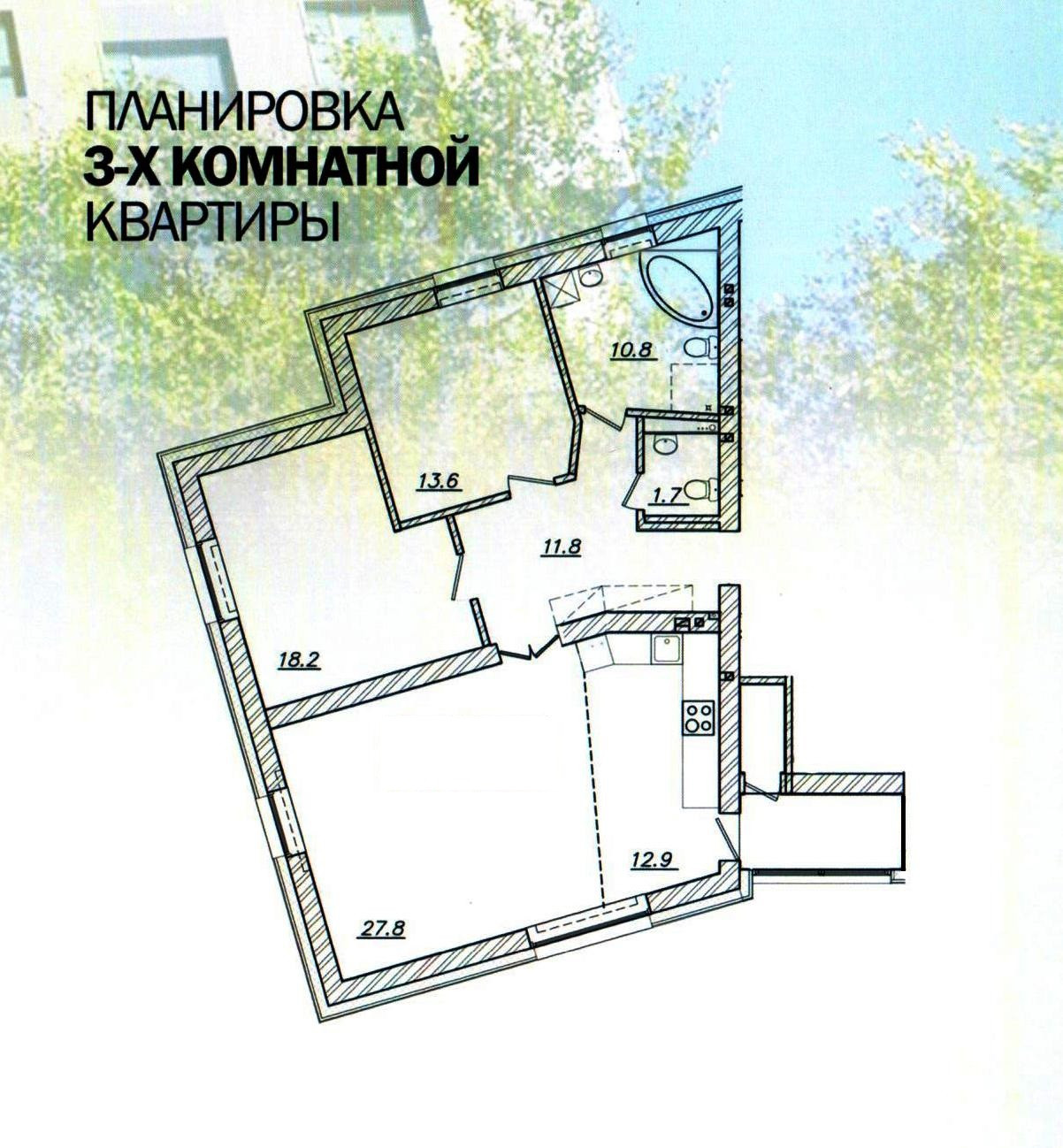 Площадь кухни 12.9 м2
