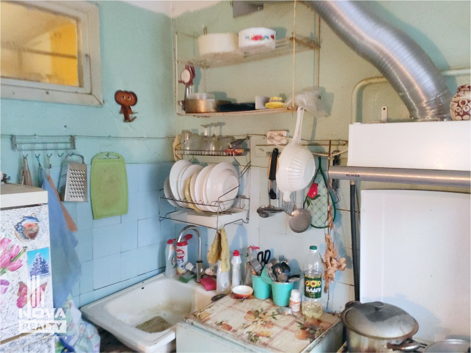 Кухня 6,2 кв.м., установлена газовая колонка-автомат (дешевый природный газ).