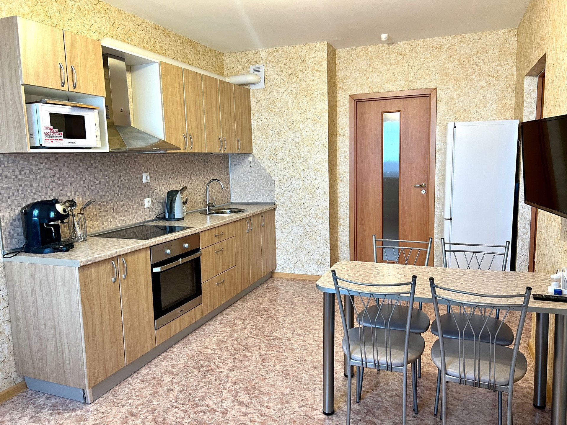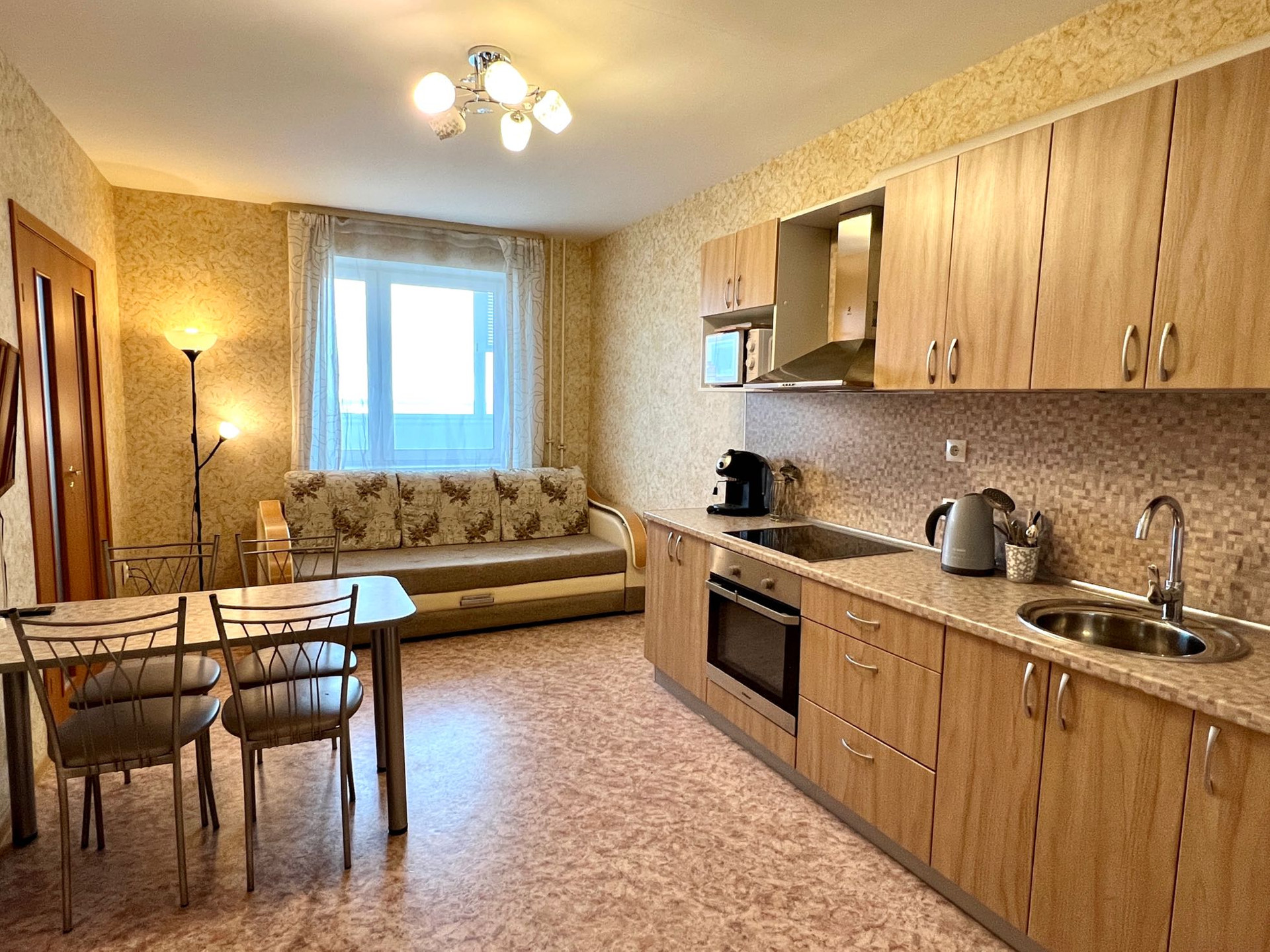 -В квартире остается: кухонный гарнитур, варочная панель, духовой шкаф, вытяжка, два шкафа купе, диван, письменный стол, кровать с тумбой, стол и стулья, водонагреватель.