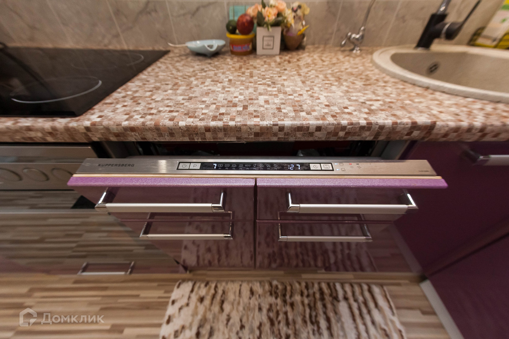 - Кухня (много естественного света), 10,3 м², со встроенным кухонным гарнитуром и техникой (посудомоечная машина, духовой шкаф, варочная панель, холодильник), а так же выходом на застекленную лоджию 1,3 м2, которая создает дополнительный комфорт и уют (зона для релакса и отдыха).