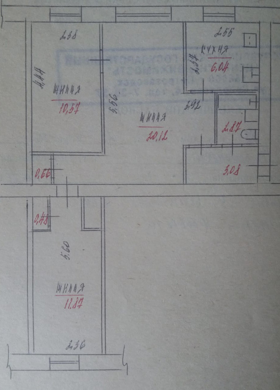 Общая площадь квартиры - 55 кВ.м.(плюс балкон). Окна квартиры - на две стороны. Квартира без ремонта.