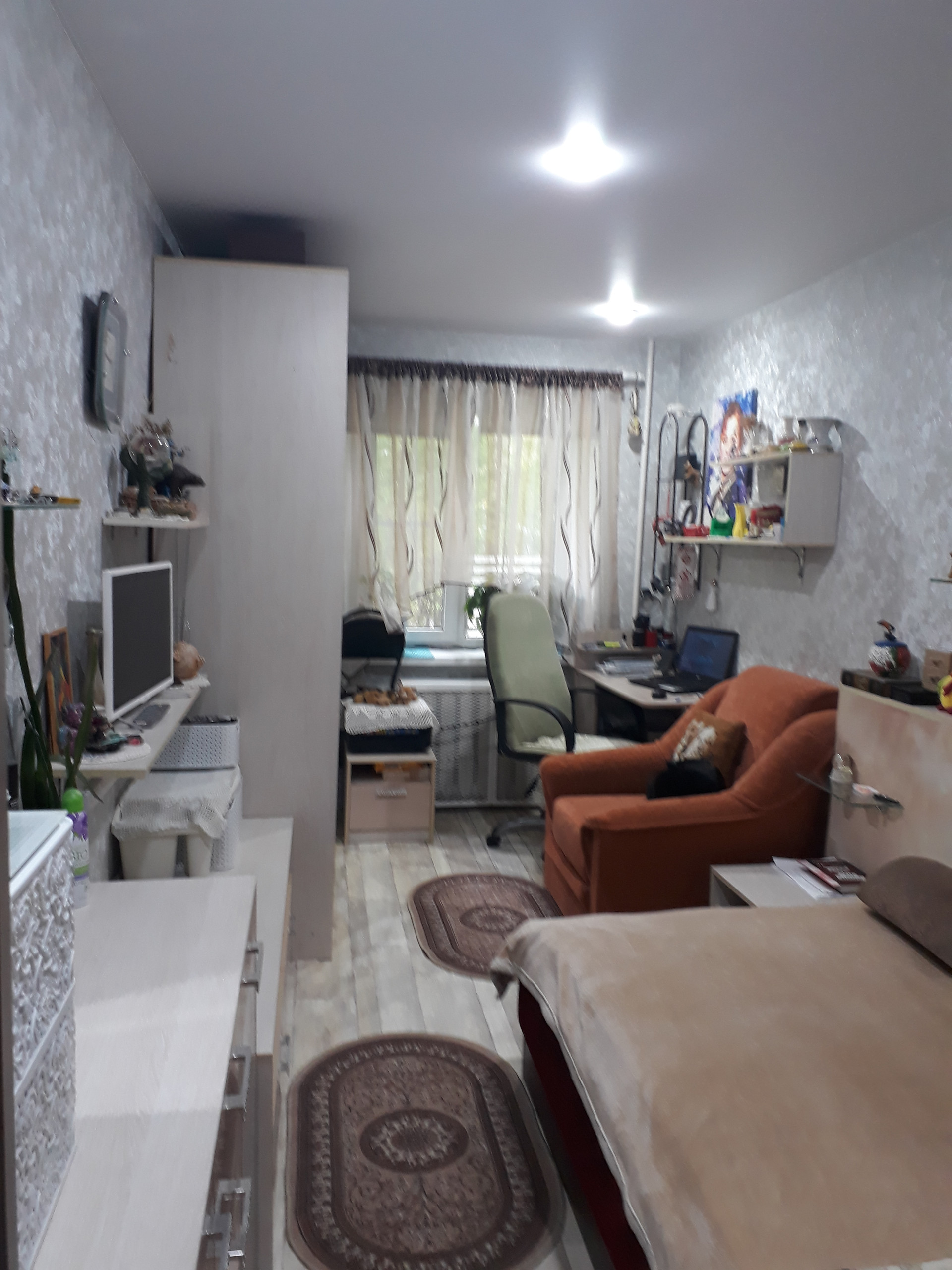 Установлены стеклопакеты, в комнатах выровнены стены, перебраны полностью полы, застелен ламинат, линолеум, натяжные потолки. Заменены: водопроводные трубы, электропроводка.