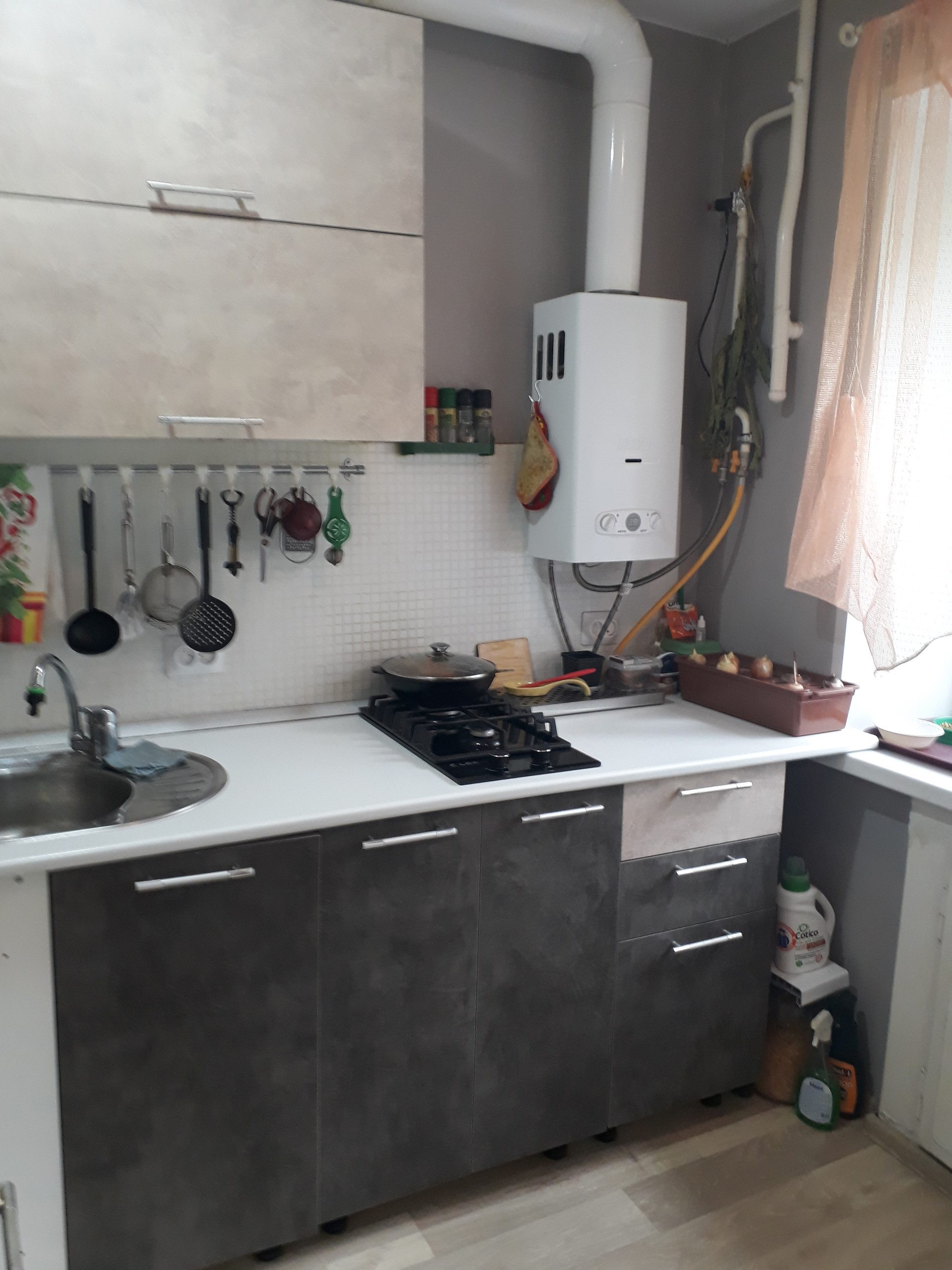 Природный газ. Новая газовая колонка. Частично остается мебель.