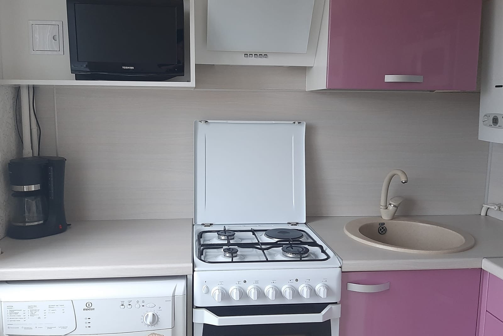 •Газовая колонка на кухне, природный газ