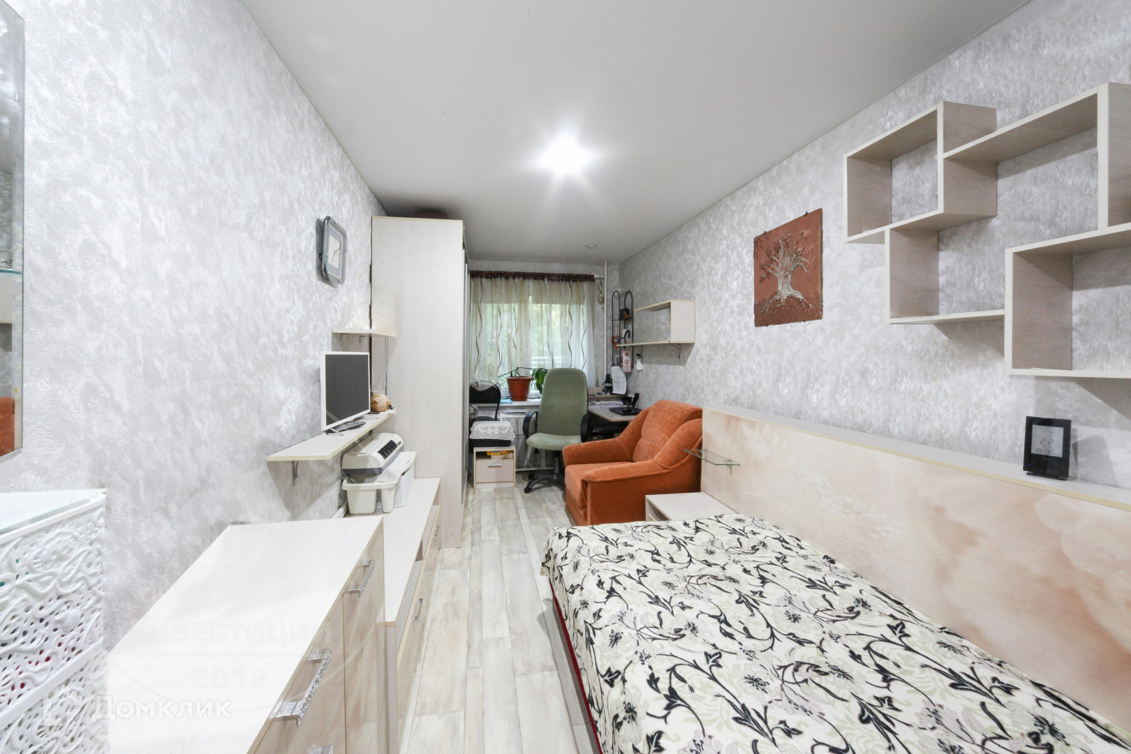 ◛ Комната 11 кв.м, натяжной потолок, ламинат. Позволяет расположить и спальное место и рабочую зону.