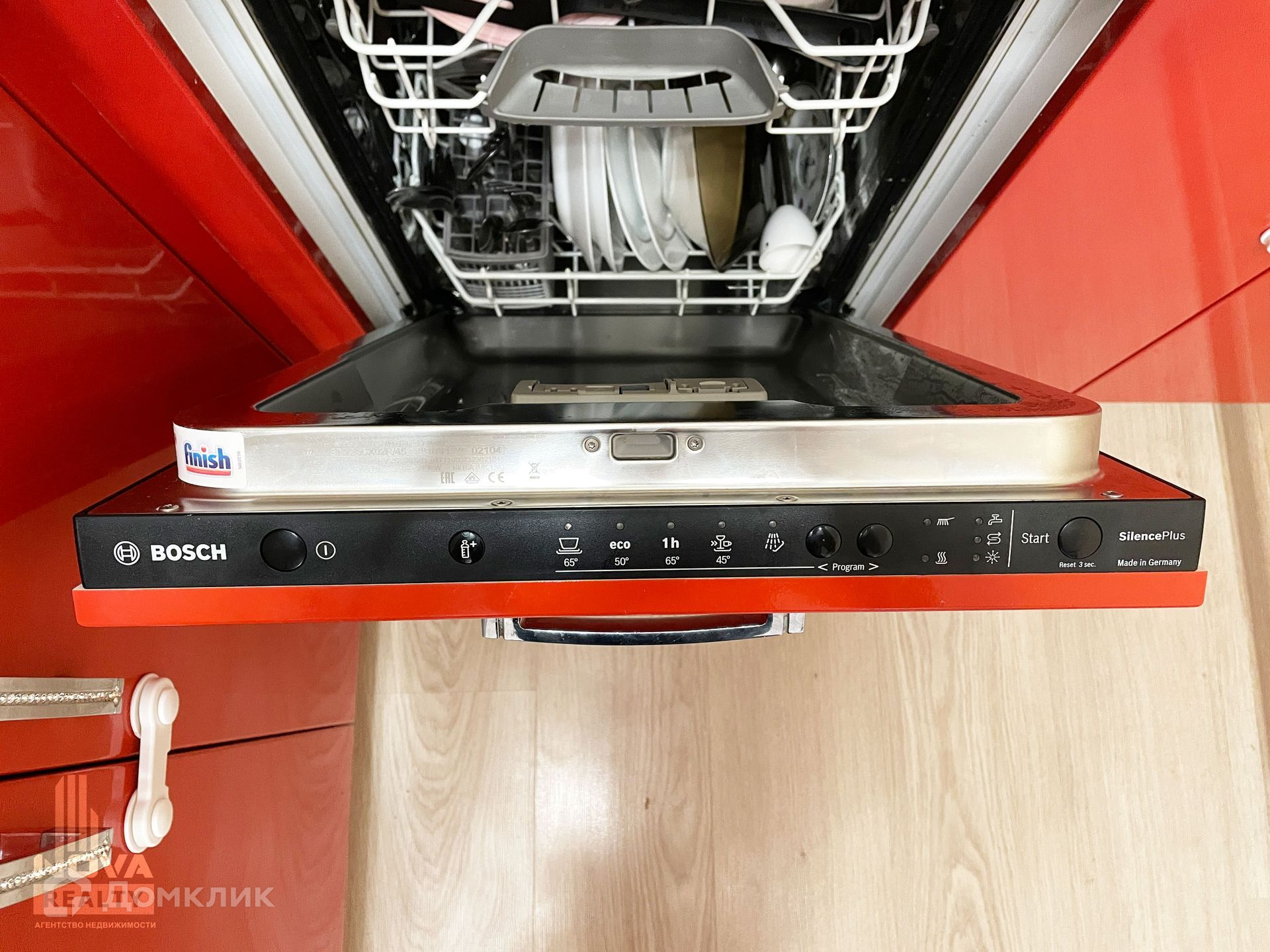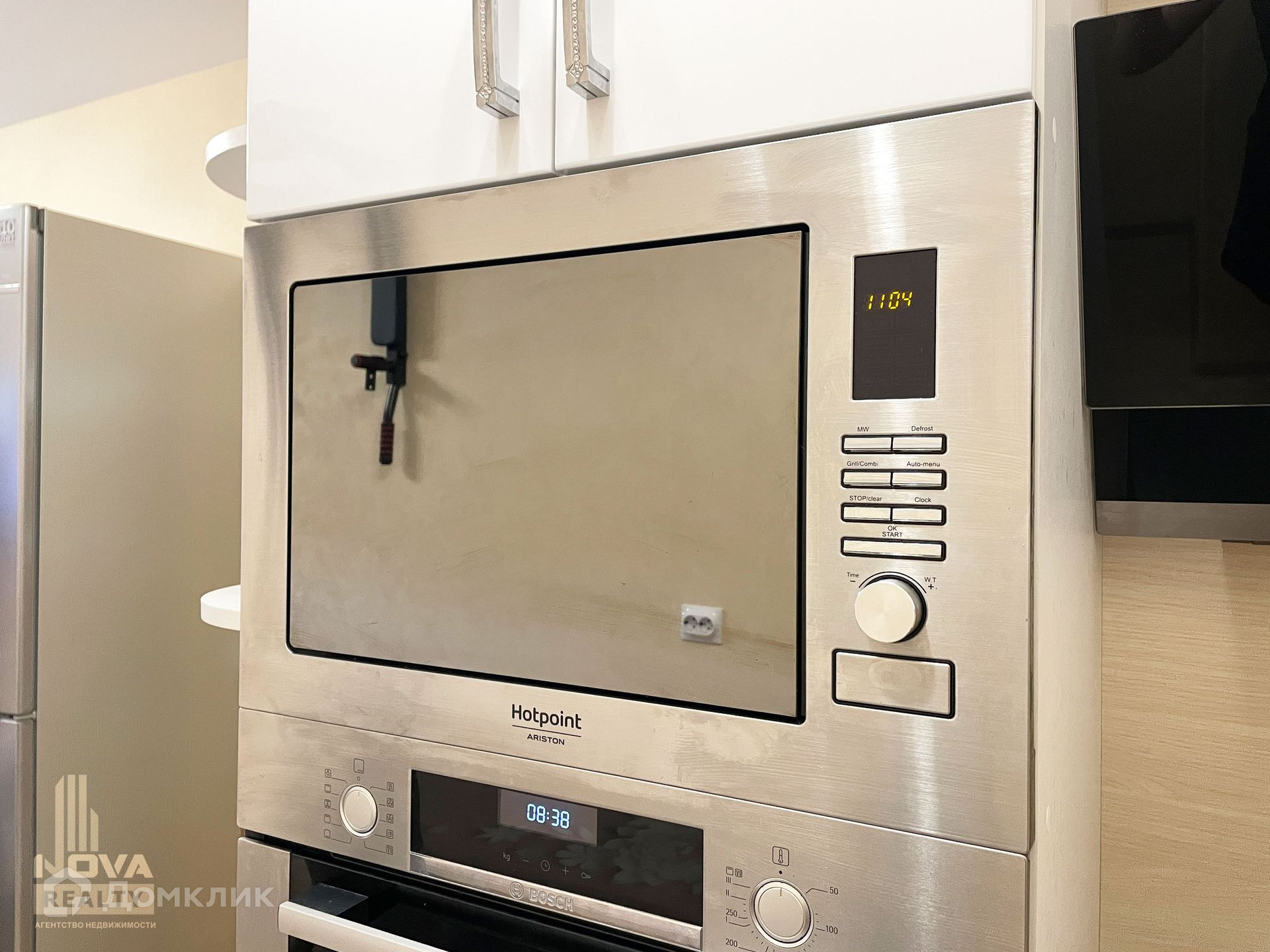 Будущим хозяевам остается: кухонный гарнитур, варочная поверхность, духовой шкаф, вытяжка, микроволновая печь, холодильник, посудомоечная машина, стиральная машина, стол, стулья, телевизор, диван, кровать, прикроватные тумбы, шкаф в прихожей.