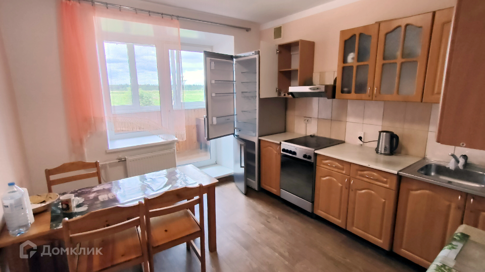 Комнаты раздельные, санузел совмещенный. Имеется лоджия 2,6 кв.м, выход на нее из кухни. Окна квартиры выходят на солнечную сторону (юго-запад). Благоустройство полное, включая центральную горячую воду. На кухне установлена электроплита.