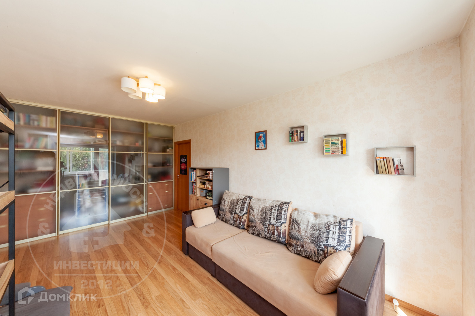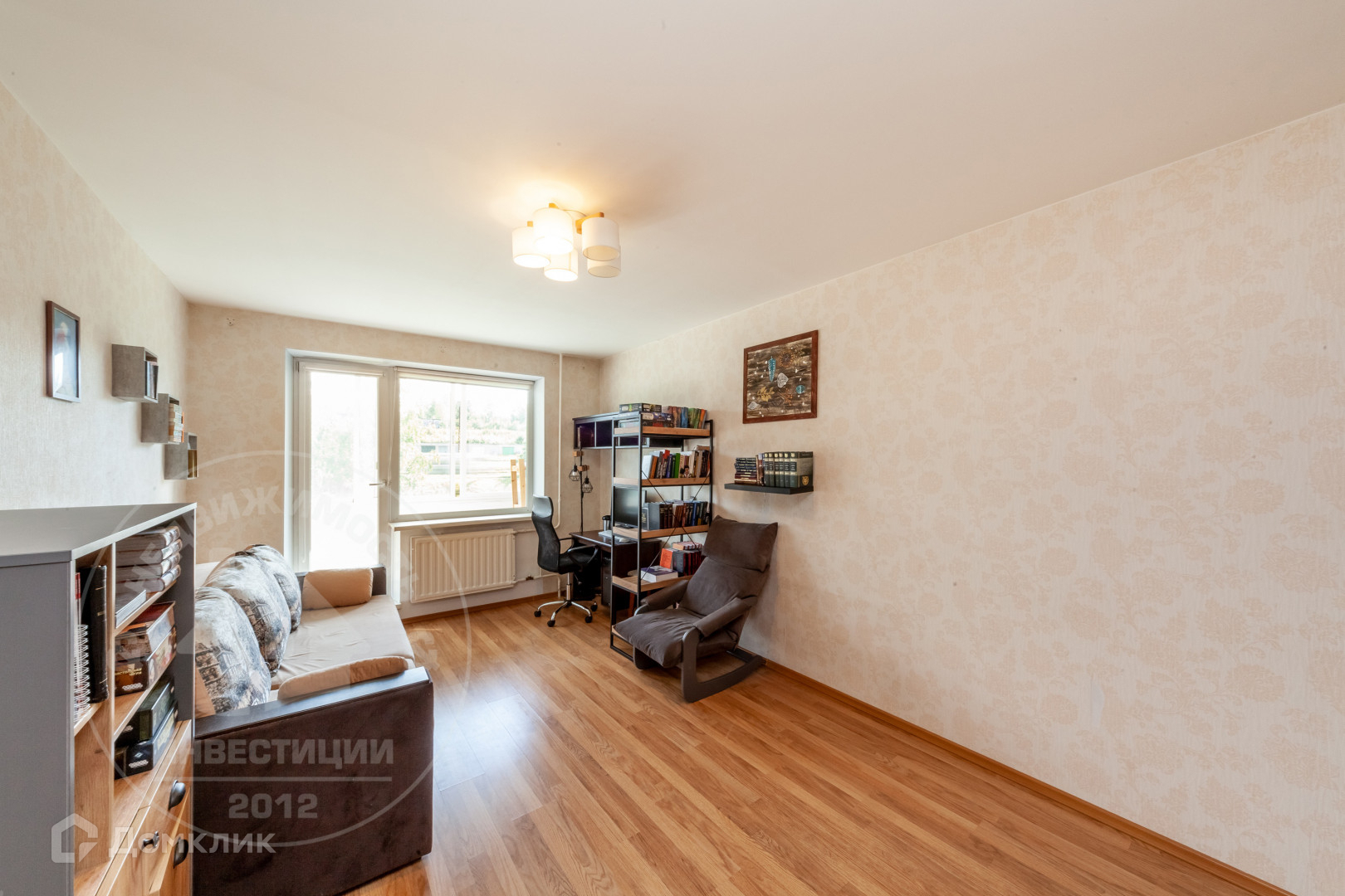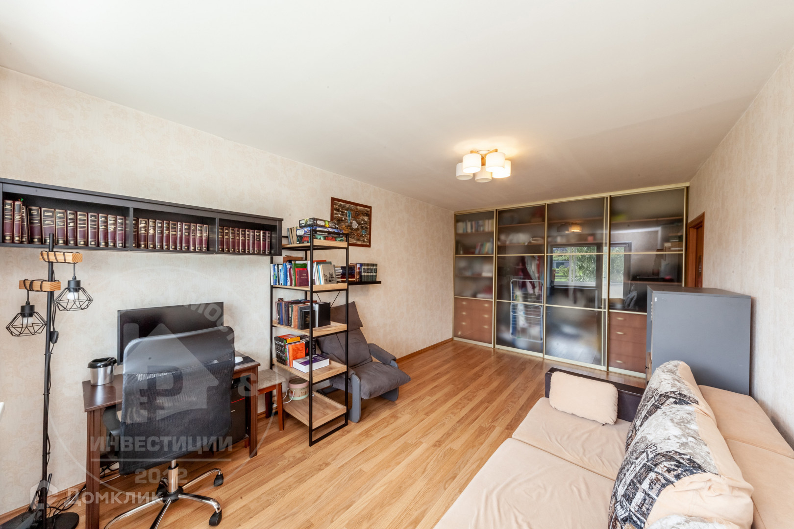 ◛ Большая комната 19,5 кв.м - двухкамерный стеклопакет,натяжной потолок, ламинат, обои в светлых тонах, встроенный шкаф( остается будущим владельцам)+ выход на лоджию.
