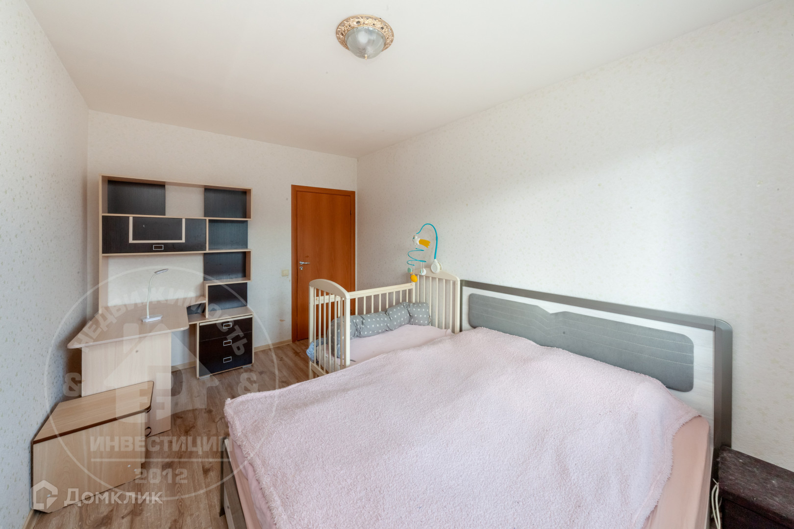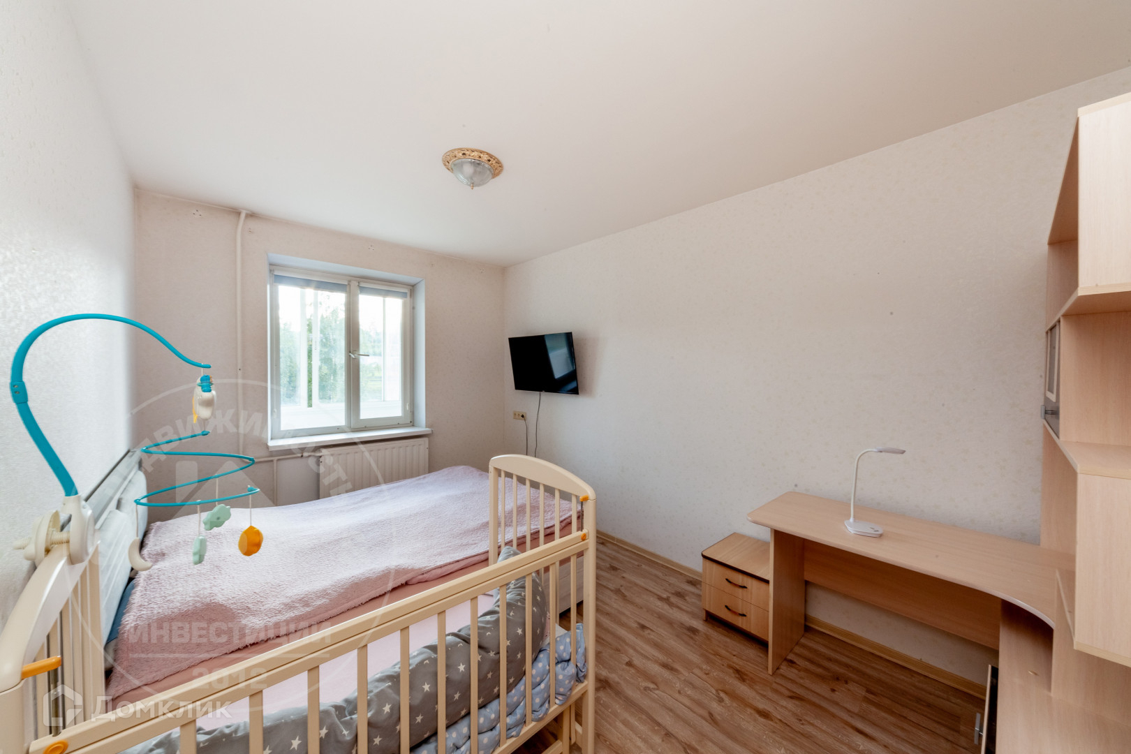 ◛ Спальная комната 12,1 кв.м - двухкамерный стеклопакет+ рулонные шторы, натяжной потолок, ламинат.