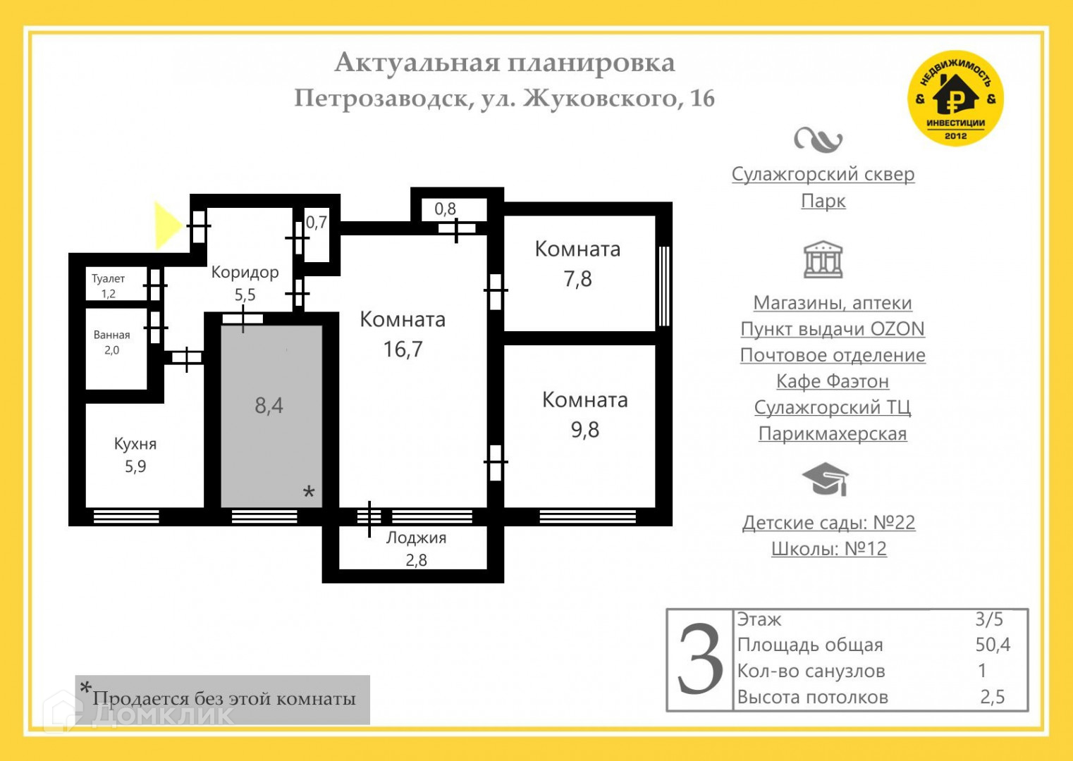 Компания "Недвижимость & Инвестиции" предлагает Вашему вниманию  четырёхкомнатную квартиру, расположенную по адресу: г. Петрозаводск, ул. Жуковского, д.16