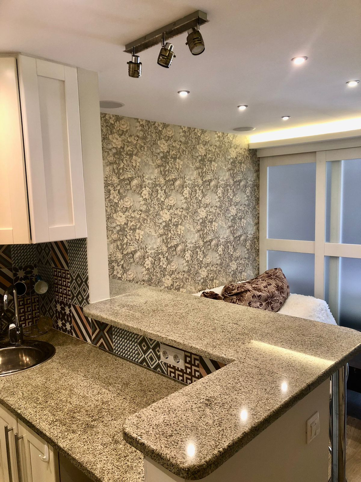 Периметр всего первого этажа-тёплый пол.