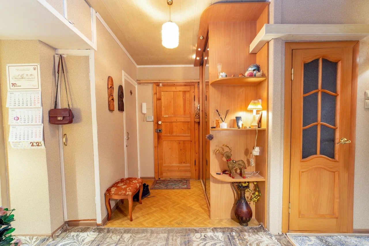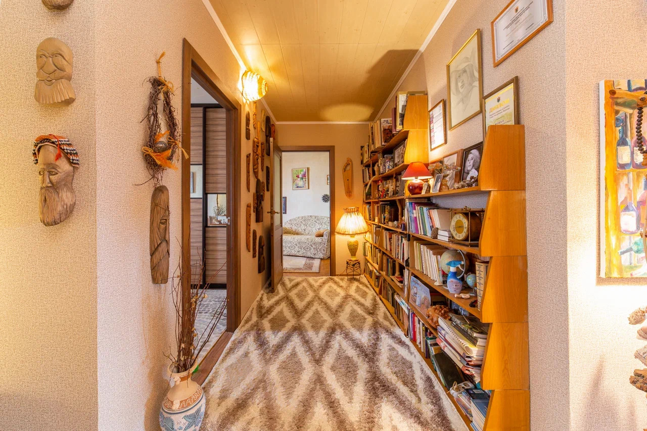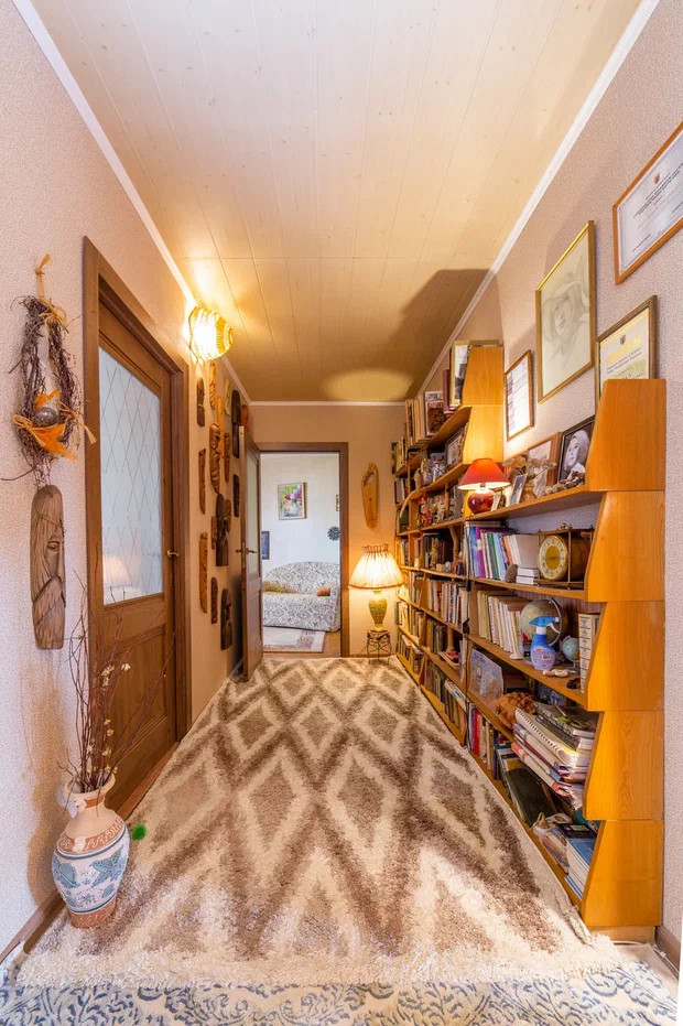 Благодаря уникальной планировке, квартира позволяет создавать интересные дизайнерские решения в расстановке мебели. Просторная прихожая (16,6 м2) при желании может быть использована как библиотека. Все книжные полки останутся новым владельцам.