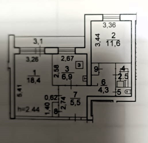 Высота потолков 2.44 м