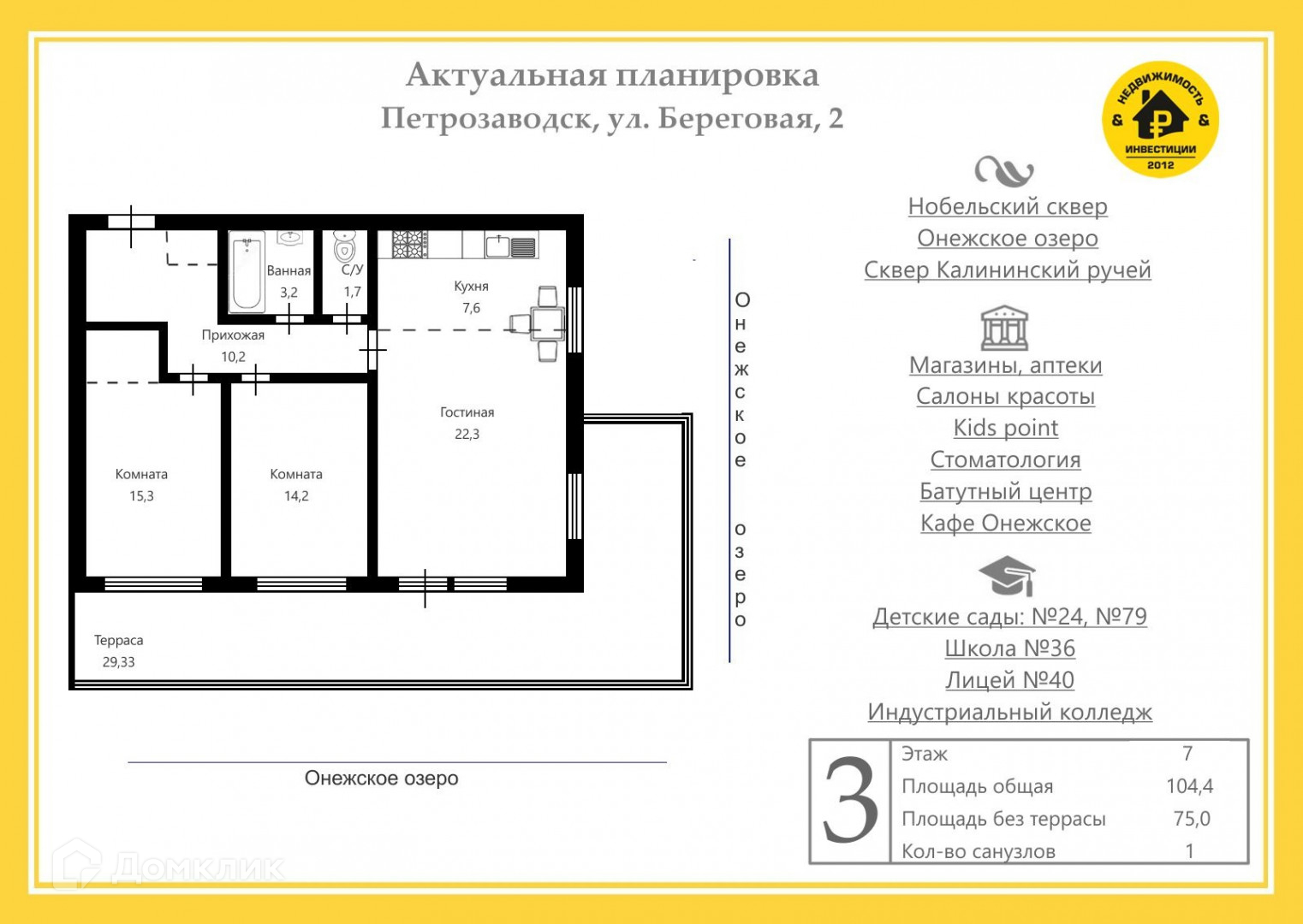 3-комнатная квартира, 104.4 м2, этаж 7 / 7, на продажу в Петрозаводске, Береговая улица, 2к1