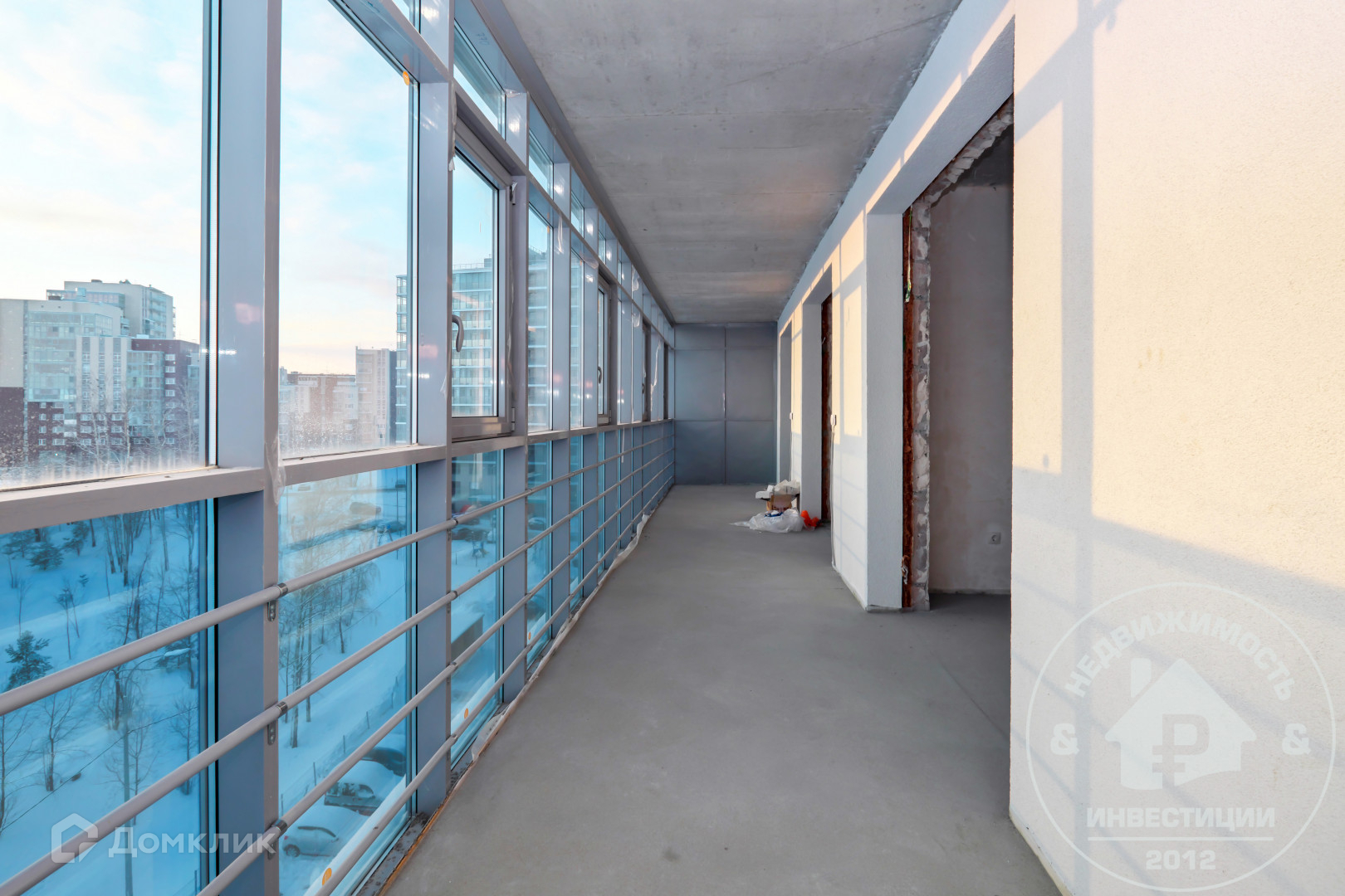 Застекленный балкон, но все же хочется назвать его террасой из-за размера! - 29.3 кв.м. с потрясающим панорамным видом на акваторию Онежского озера, где Вам открывается приятная возможность каждый день и каждый вечер наслаждаться завораживающими рассветами и закатами, попивая вкусный чай и наблюдая за красотами карельской природы. При этом из-за расположения ЖК всегда будет тишина, покой (машин не слышно), и только свежий воздух с воды.