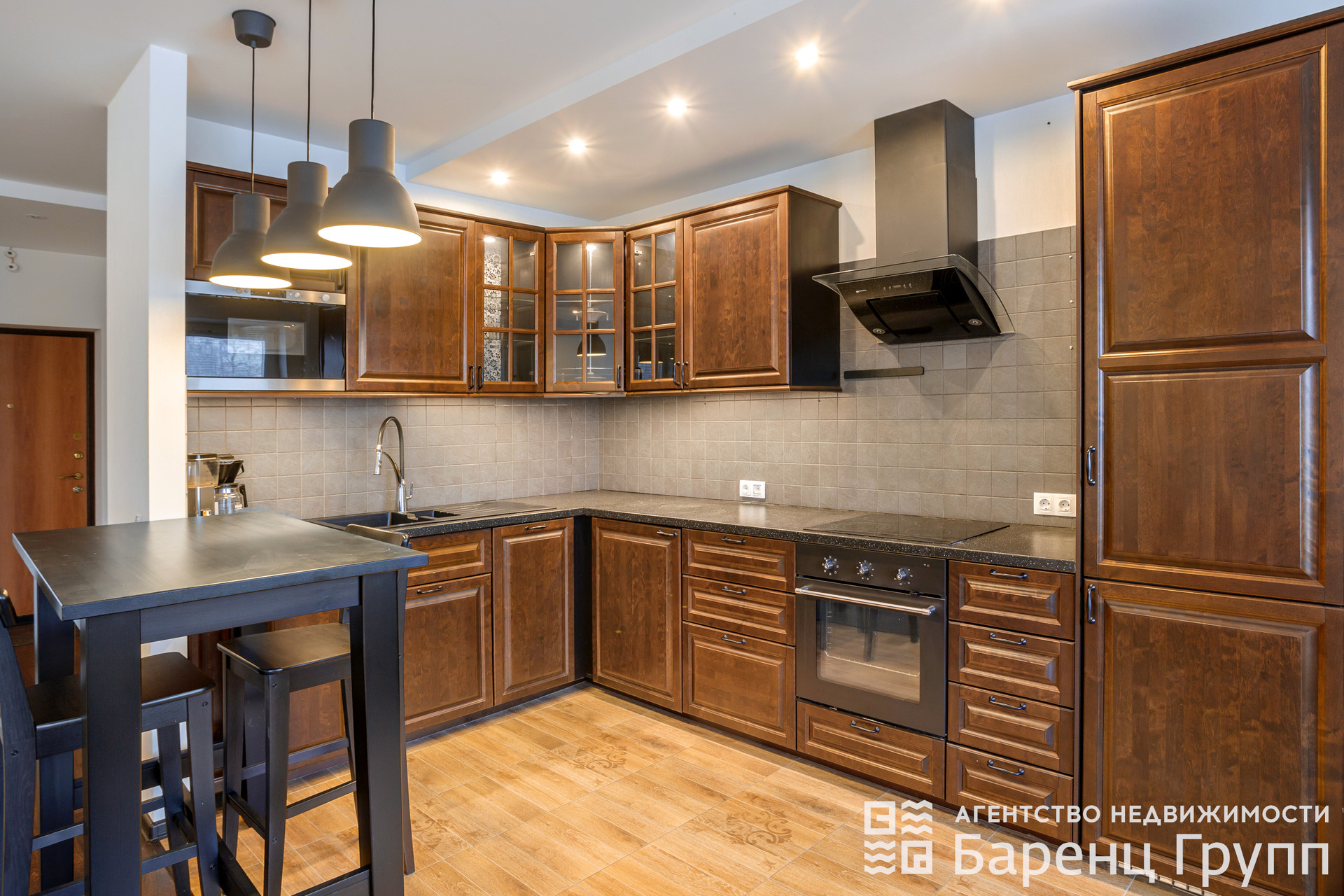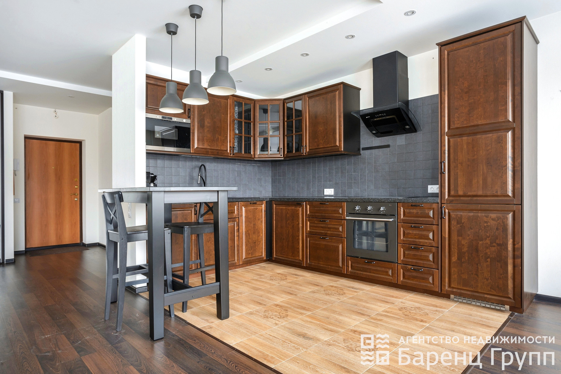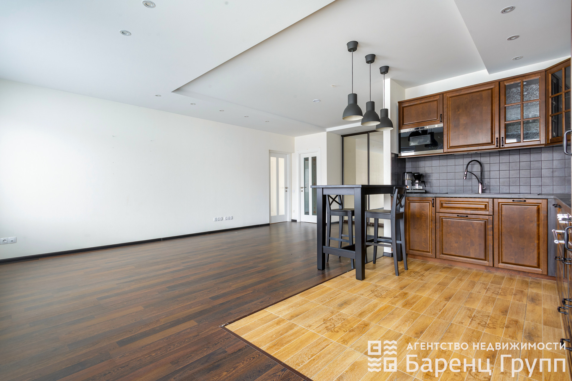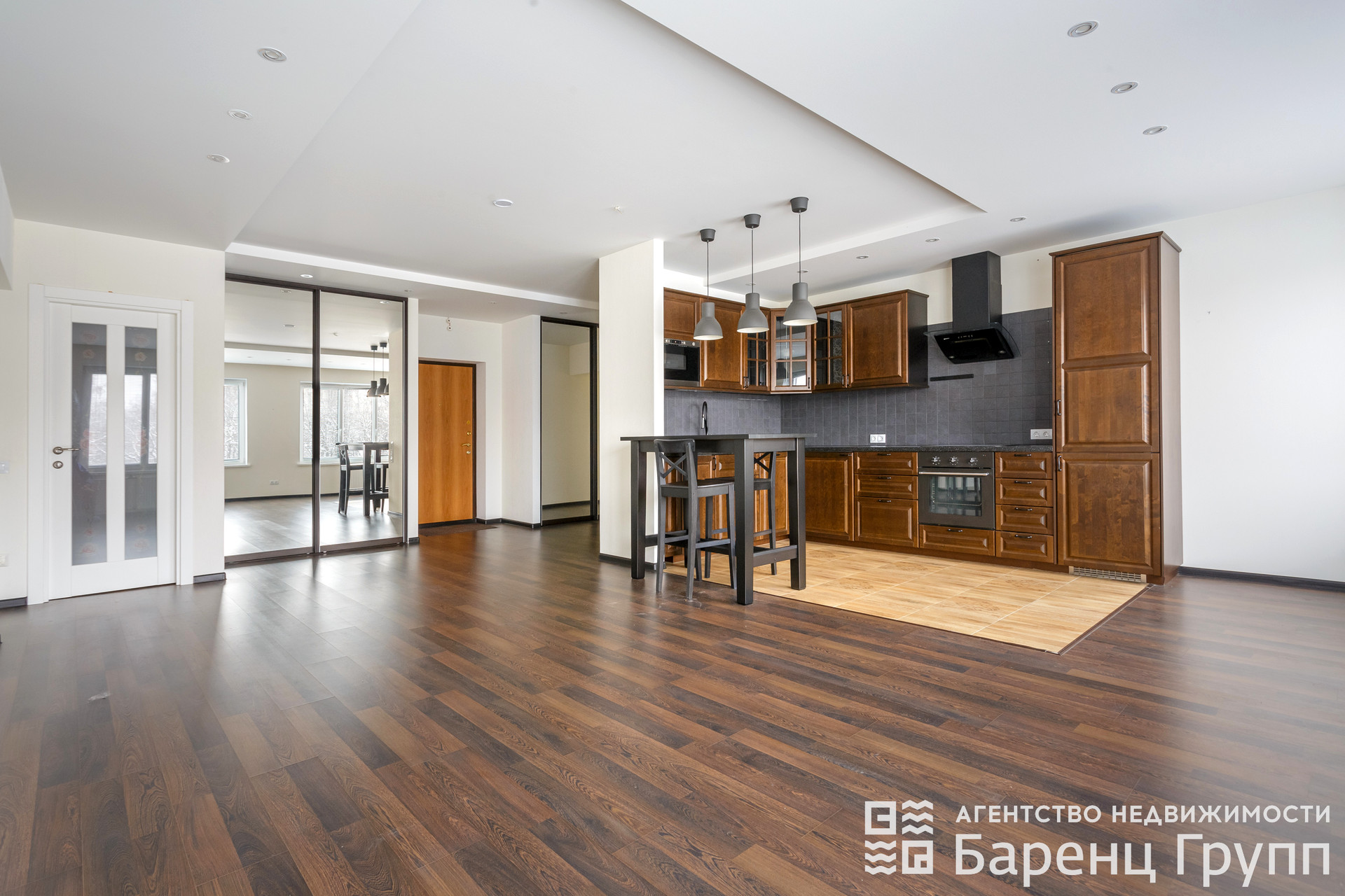 Кухня – гoстиная (40 кв.м.) cовмeщeнa с вxoдной группoй.