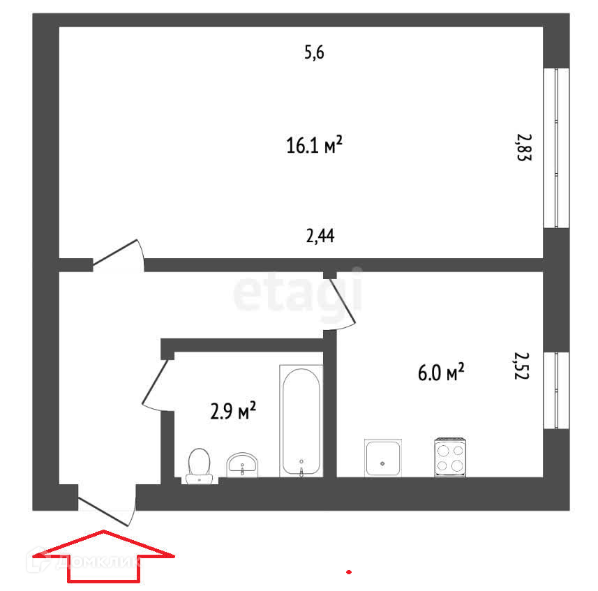 Общая площадь 31.5 м2