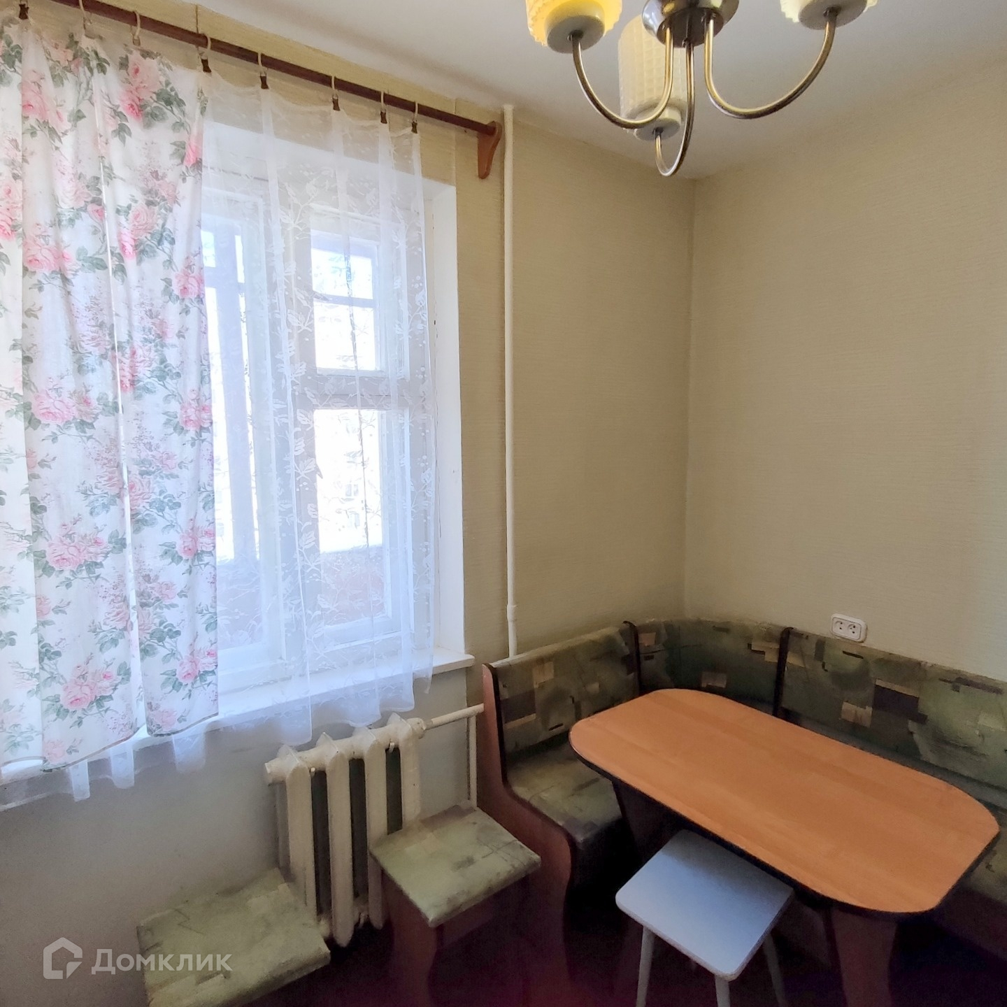 Квартира чистaя, но бeз ремонта. Hа полу cтаpенький пaркет, окна обычные деревянные, санузел без кафеля. В комнате смонтирован натяжной потолок.