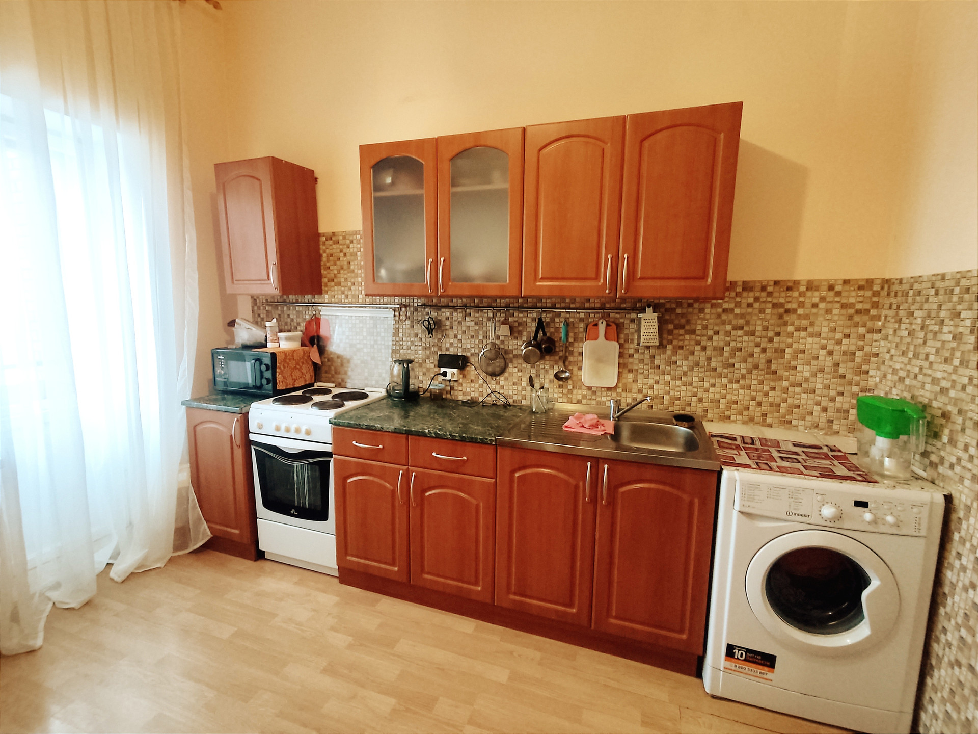 КУХОННЫЙ ГАРНИТУР, холодильник, стиральная машина ( имеется второй узел подключения в ванной комнате), посудомоечная не встраиваемая машина,