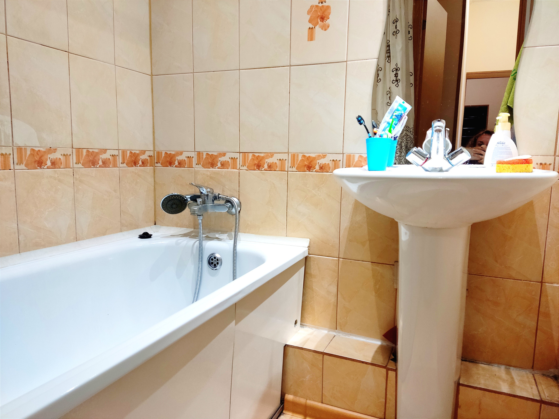 Окна деревянные, санузел раздельный -кафель,теплые электрические полы;пол-ламинат