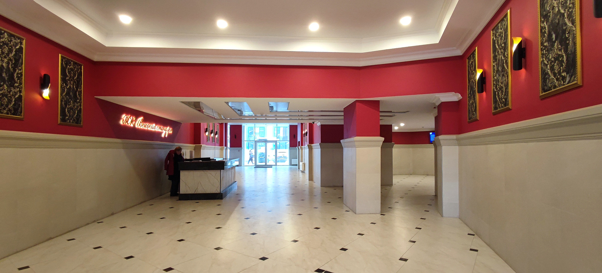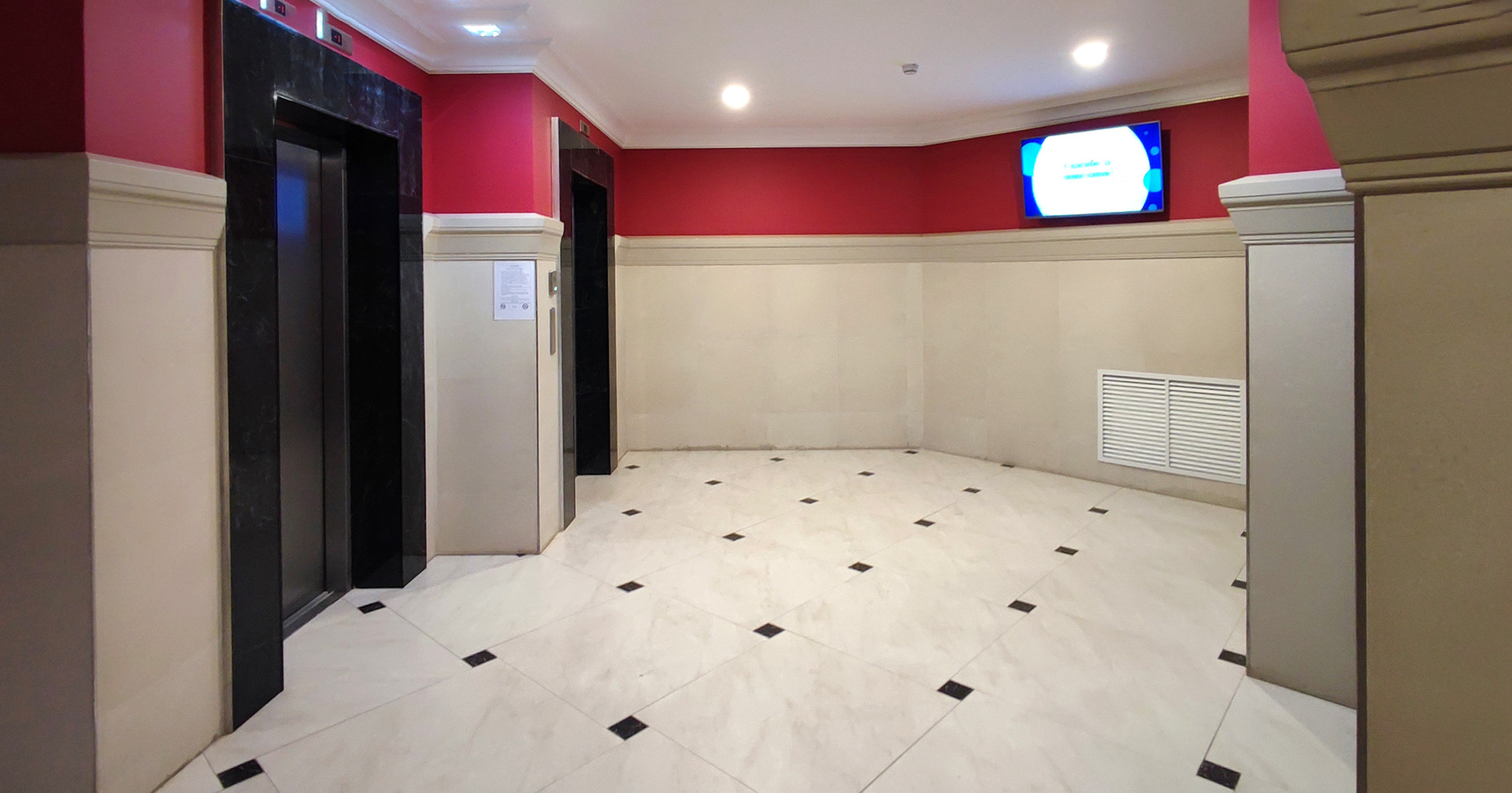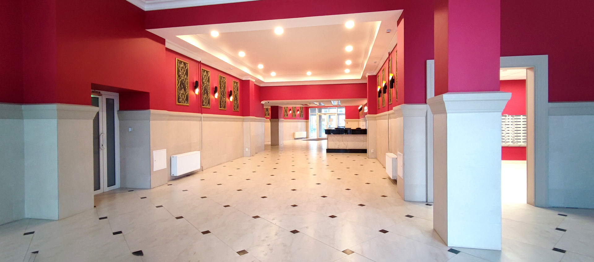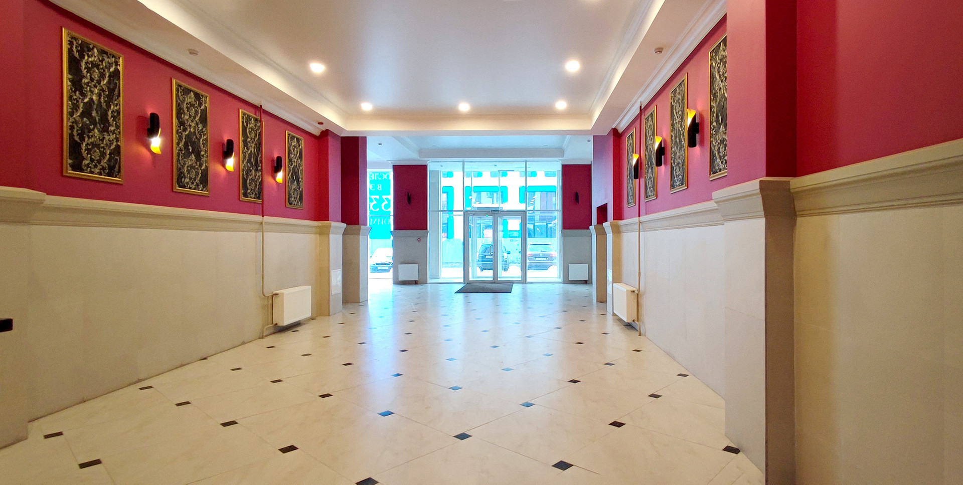 1). Просторный дизайнерский парадный холл, круглосуточная охрана, колясочная, велопаркинг, почтовая комната.