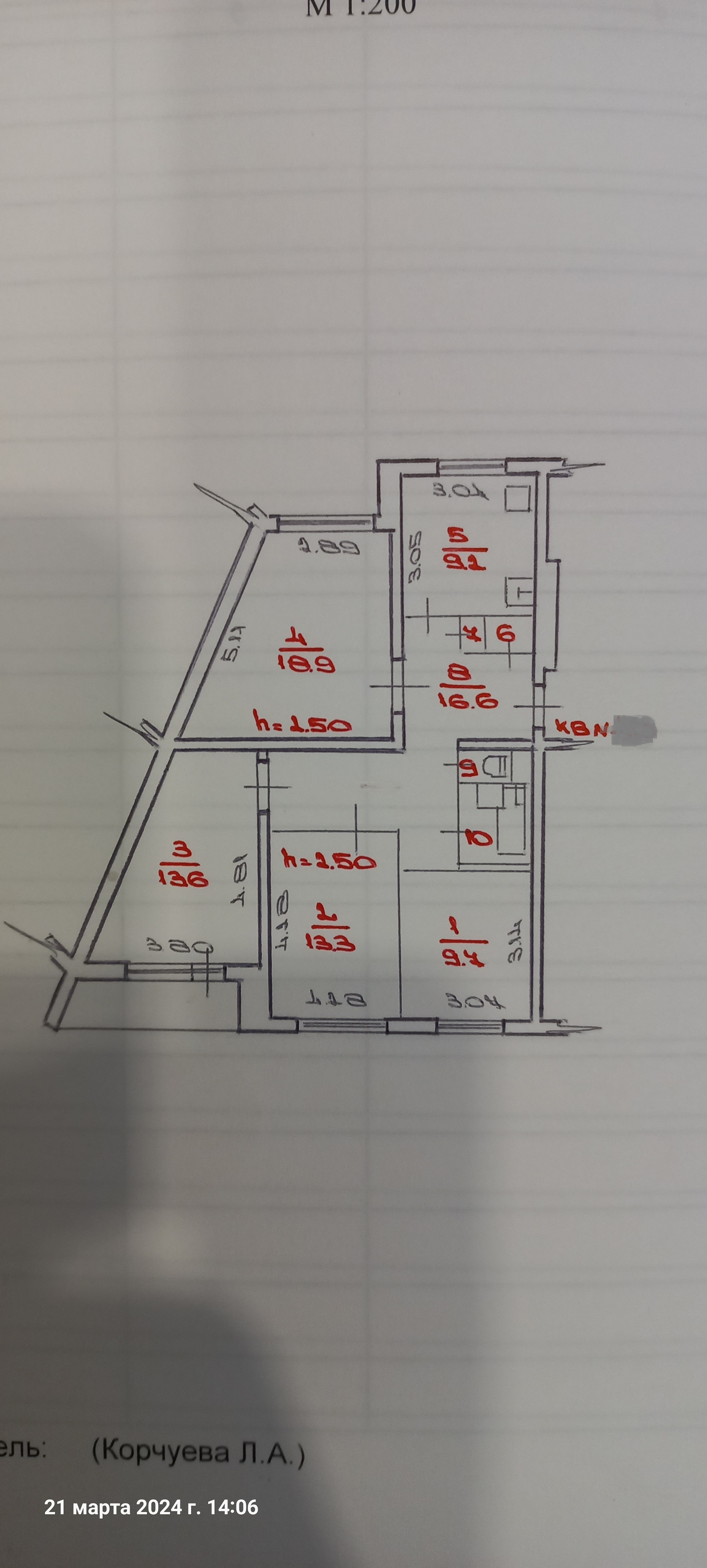 Жилая площадь 55.5 м2