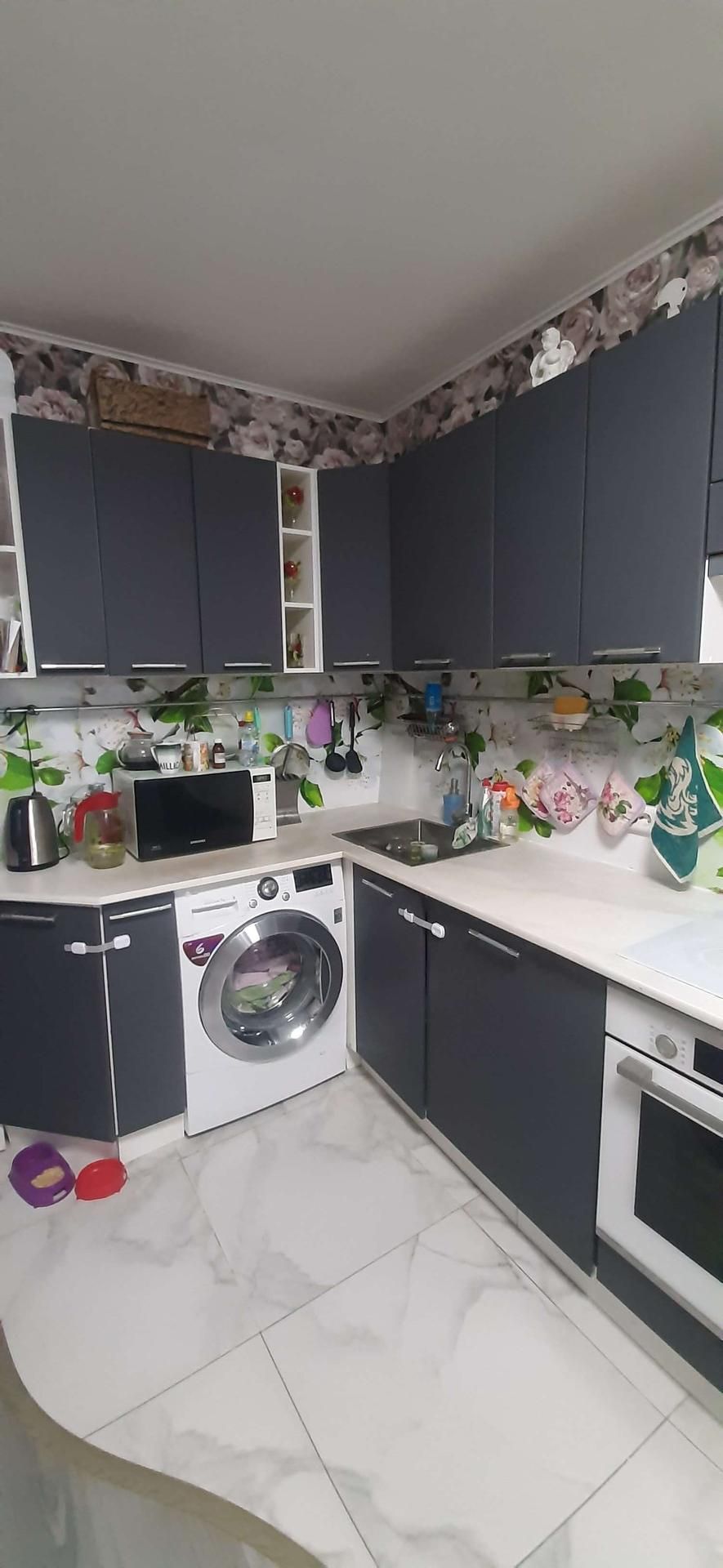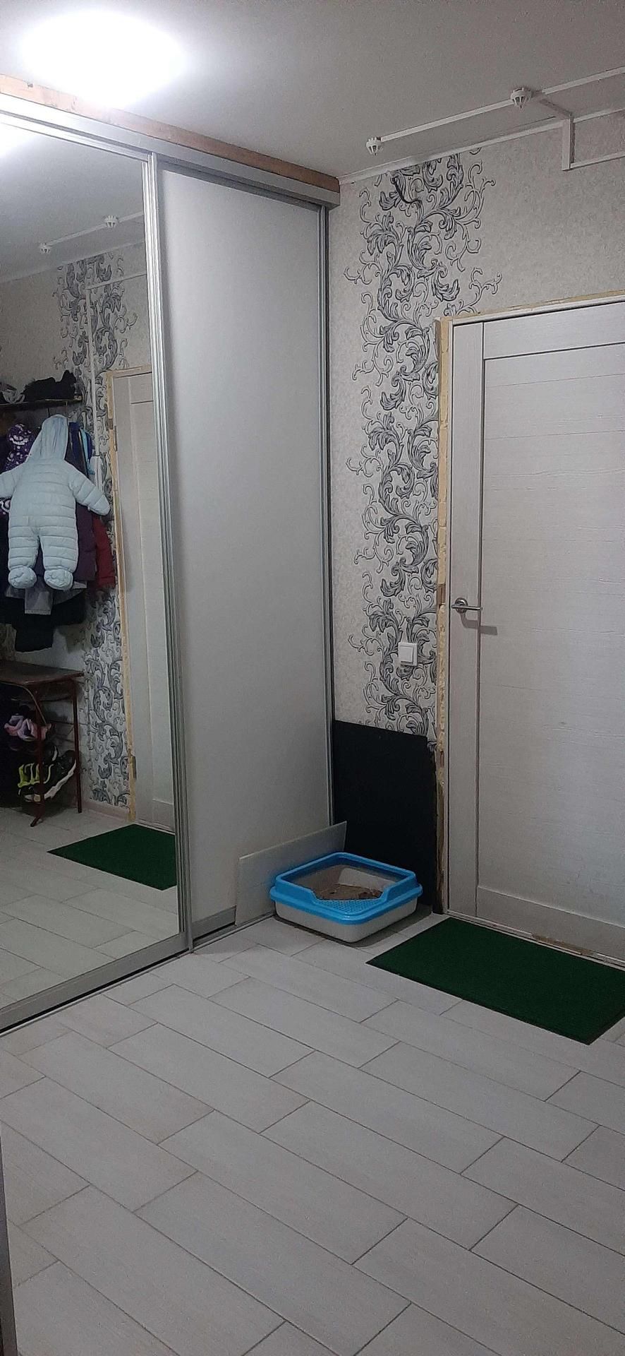 В квартире остается кухонный гарнитур,варочная панель,духовой шкаф,вытяжка,большой шкаф-купе глубиной 115 см,в коридоре.