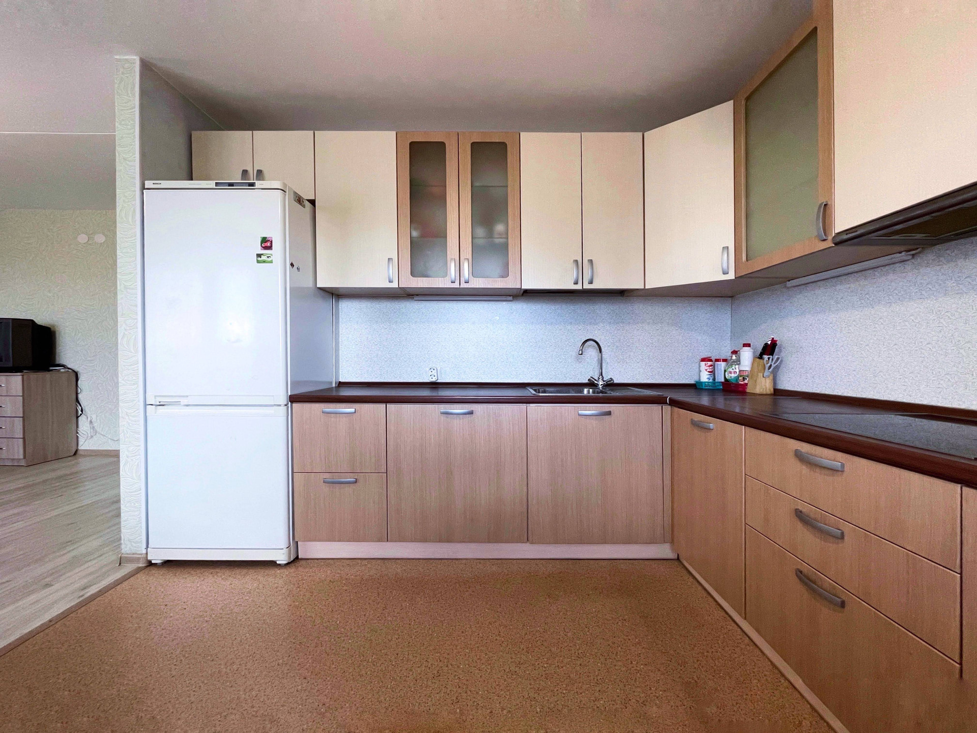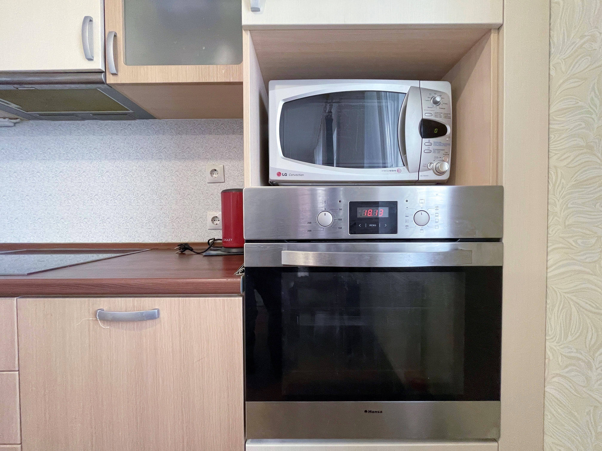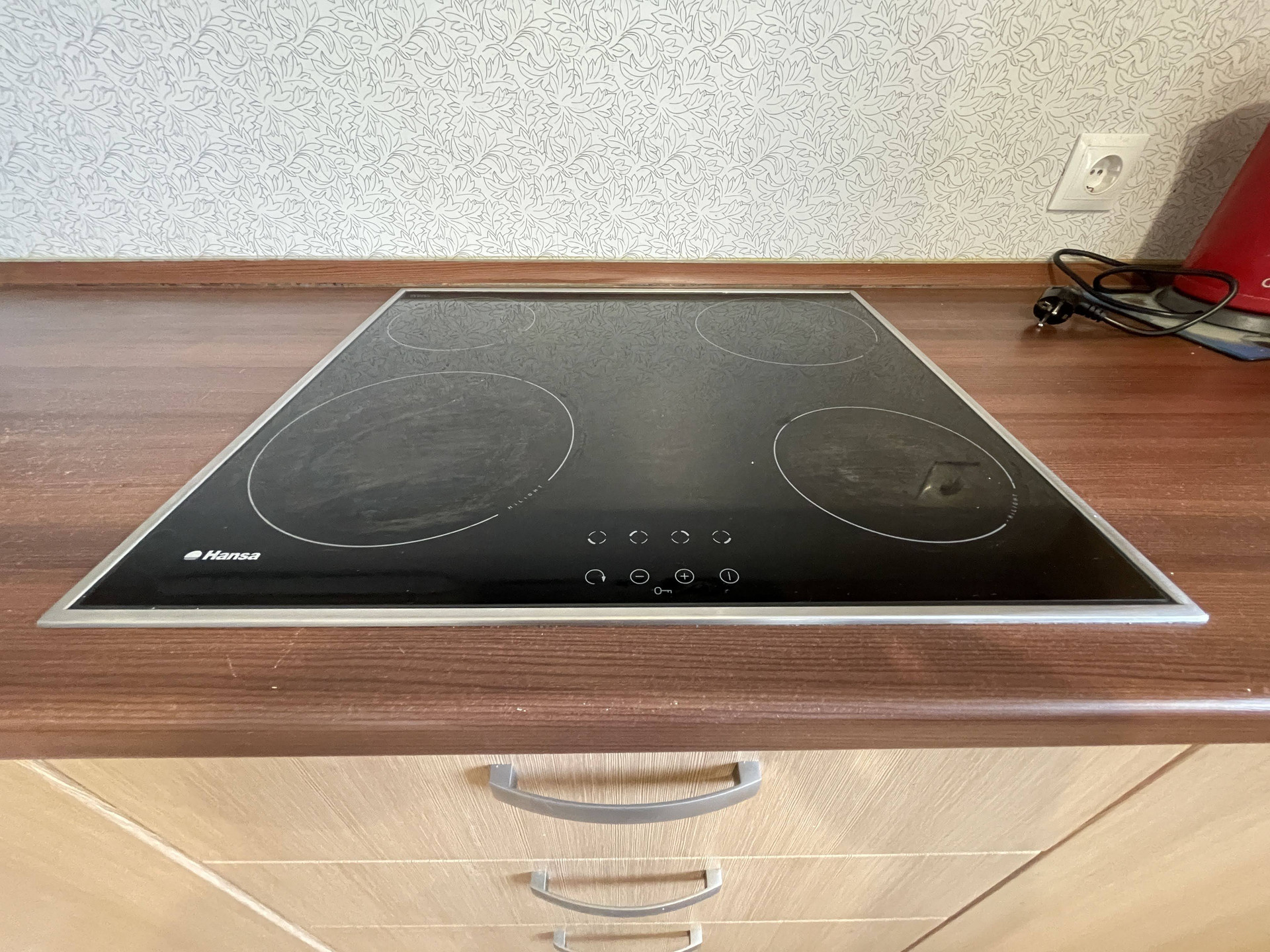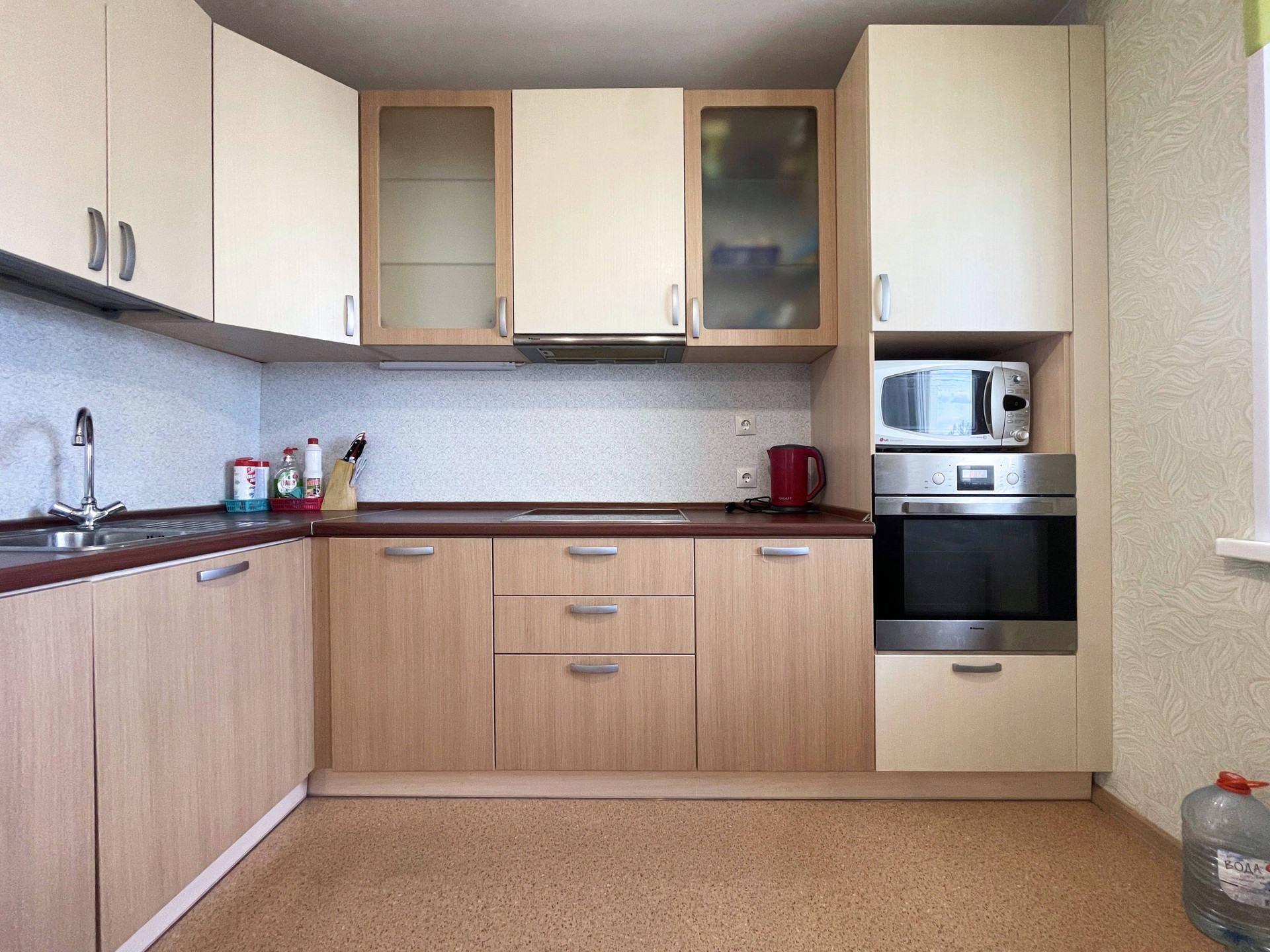 - Варочная поверхность, духовой шкаф, кухонная электрическая вытяжка, холодильник, стиральная машина.