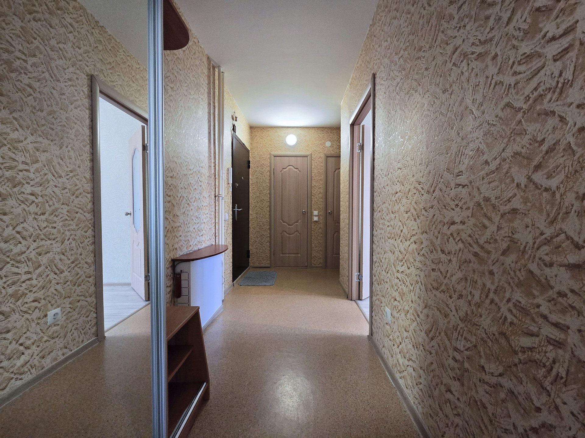 - Кухонный гарнитур, обеденный стол, стулья. Мебельная стенка, шкаф купе в прихожей и шкаф купе в спальной комнате, комод. Кровать, прикроватные тумбочки, кресло, угловой диван.