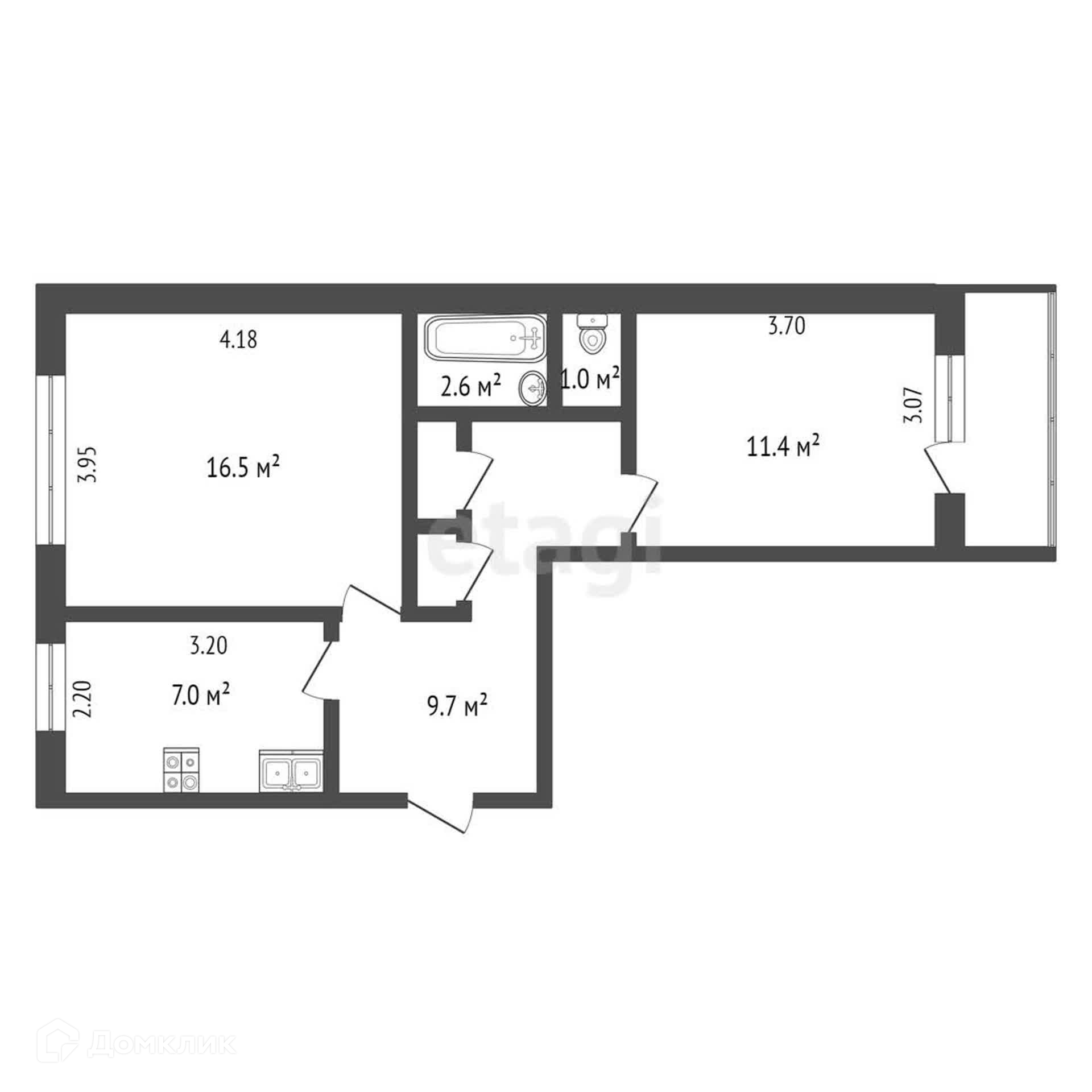 Балкон, лоджия 1 балкон